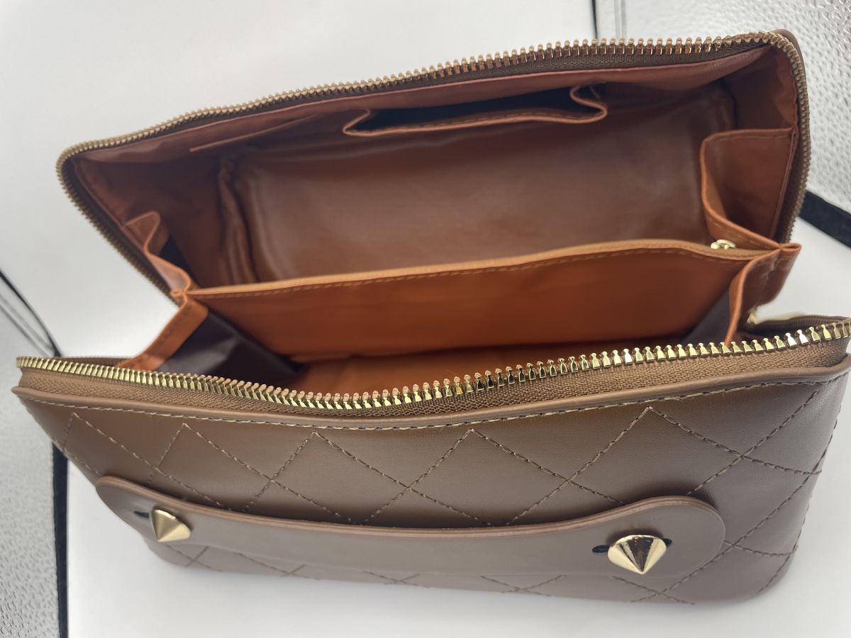 • Kolor brązowy, suwak zewnętrzny w kolorze złotym