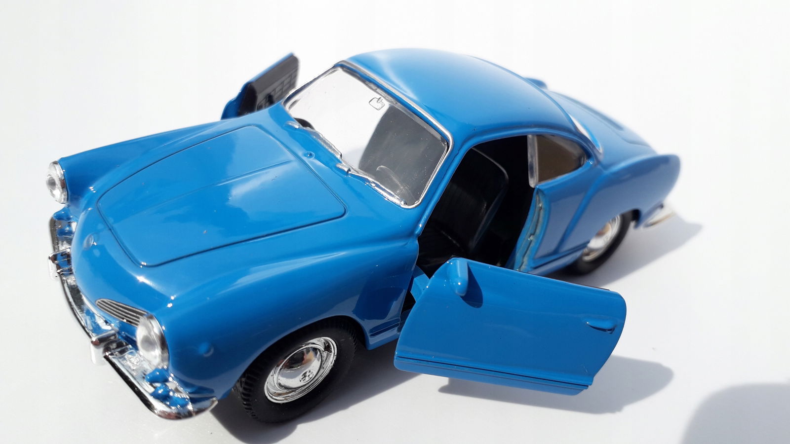 Model auta metalowy z plastikowymi elementami wykończenia wnętrza. Bardzo ładne i estetycznie wykonane. Wysoka jakość użytych materiałów i duża precyzja odwzorowania poszczególnych części. Przedstawione zdjęcia są oryginalne, pokazując autentyczne kolory oraz zawartość zabawki.