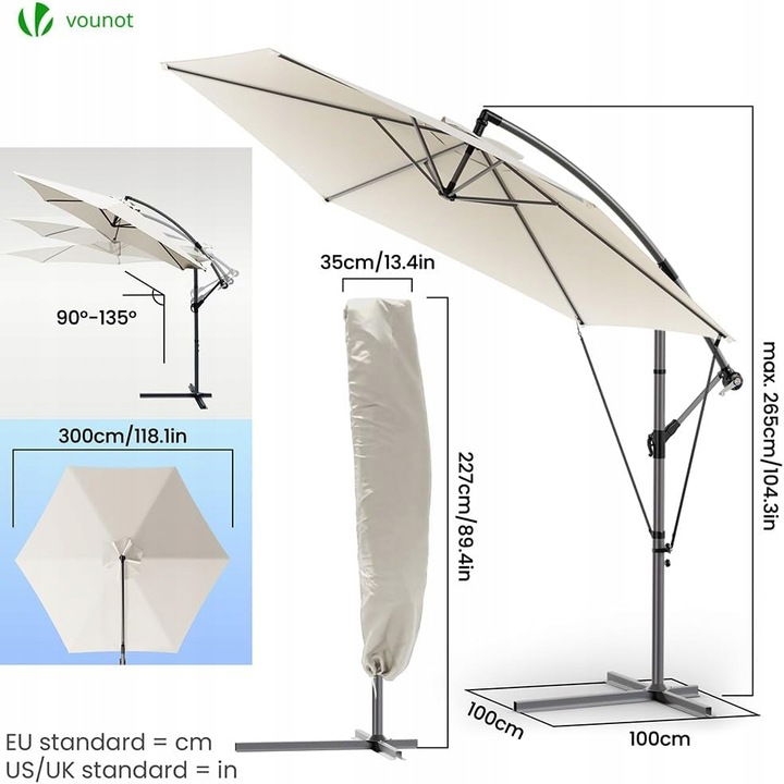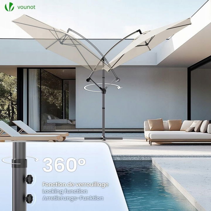 Parasol ogrodowy VOUNOT 3 m to doskonałe rozwiązanie dla osób ceniących komfortowy wypoczynek na świeżym powietrzu i skuteczną ochronę przed słońcem.