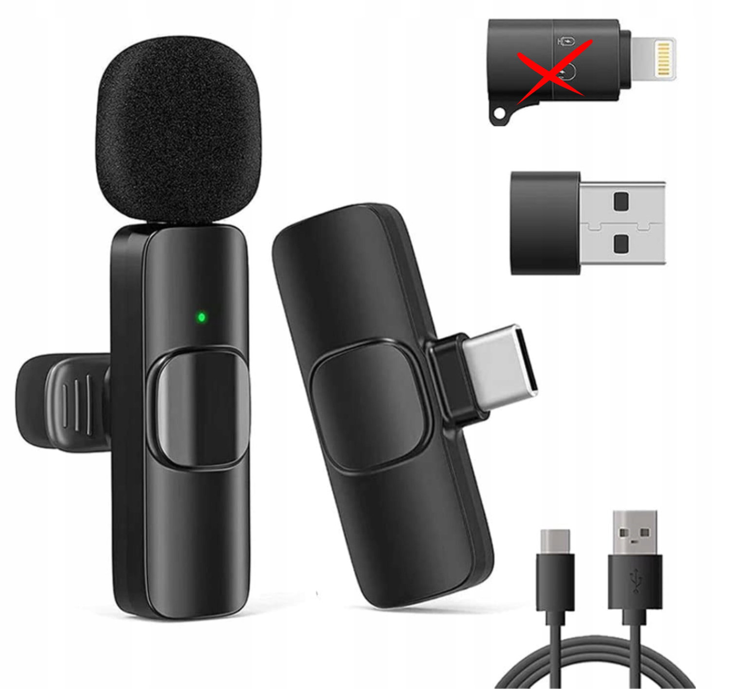 - Pełna kompatybilność: ulepszony mikrofon bezprzewodowy jest wyposażony w złącza LIGHTNING, USB-C oraz USB-A, dzięki czemu działa z telefonami z Androidem (Huawei, Honor, Samsung itd.), iPhone’ami, iPadami, laptopami i komputerami. Uwaga: na telefonach z Androidem mikrofon obsługuje wyłącznie rozmowy telefoniczne i czaty online.