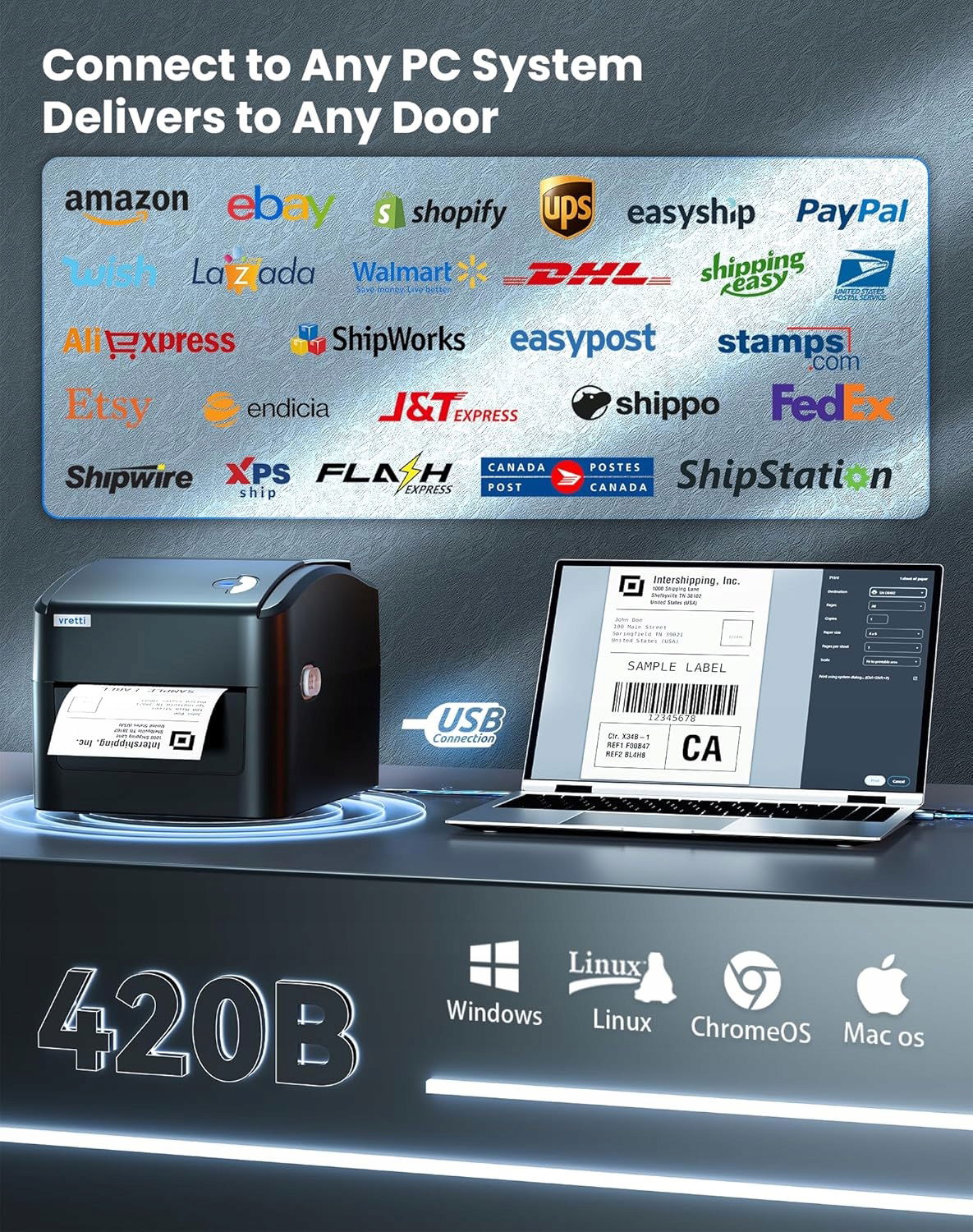 Vretti Drukarka etykiet wysyłkowych 5G WiFi,