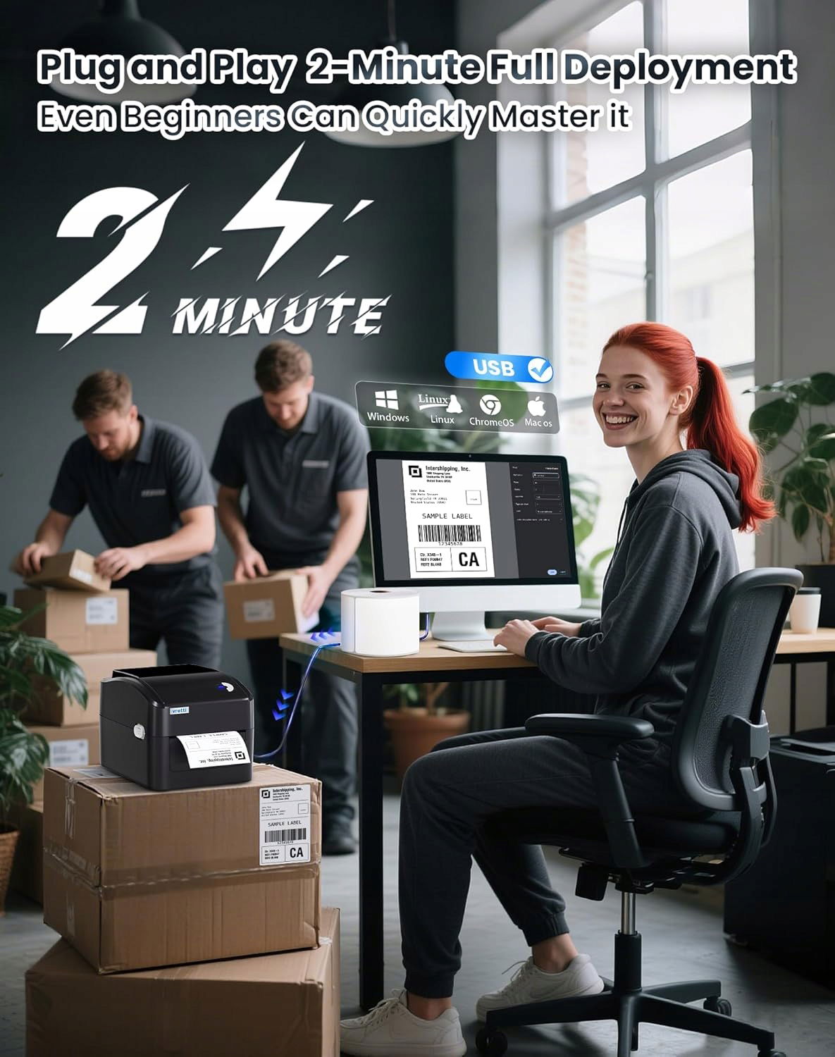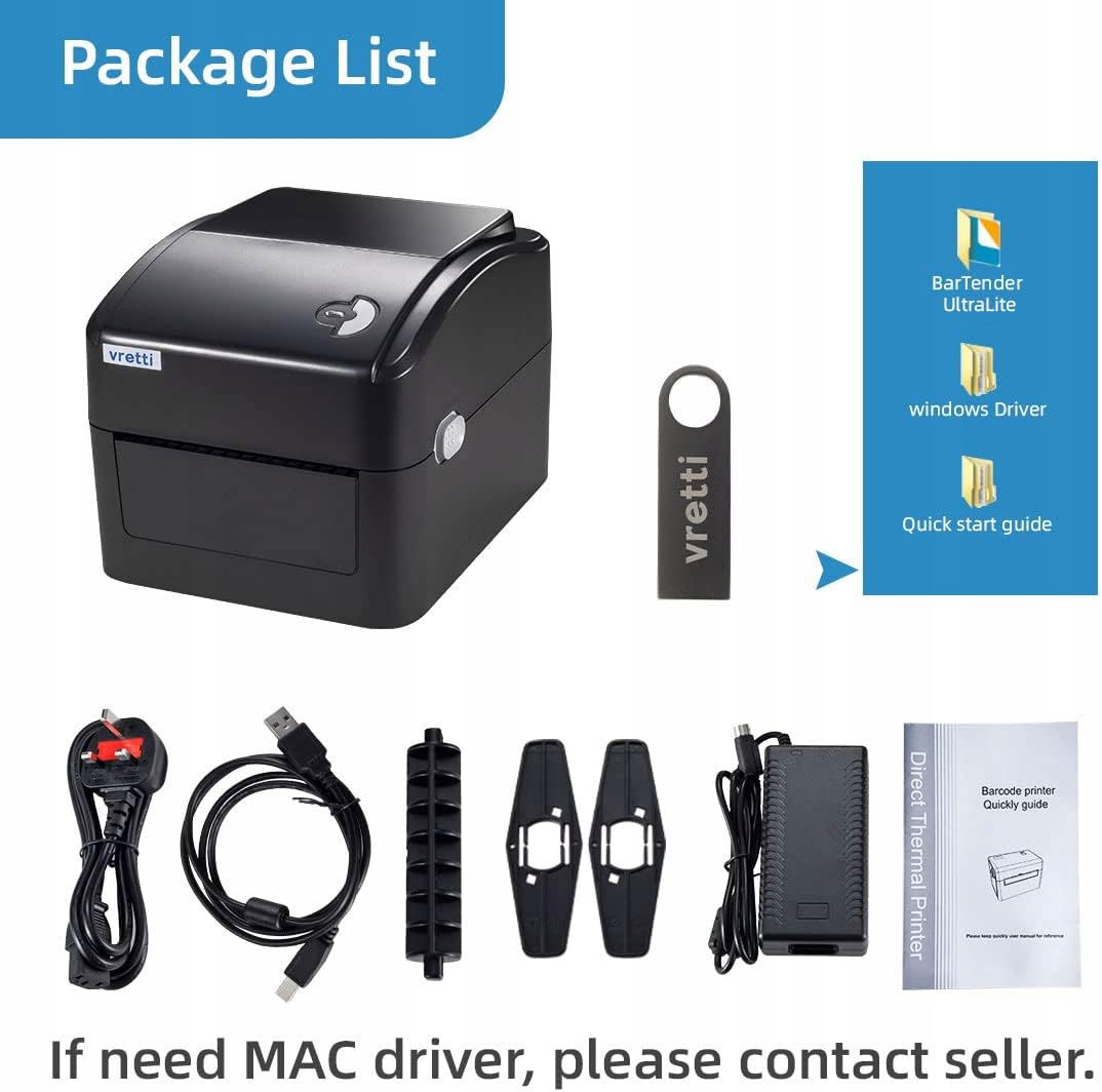 ✅ Dołączone komponenty: Drukarka etykiet wysyłkowych, kabel USB, adapter, płyta CD, wałek etykiet, 2 szt. panel mocowania etykiet, instrukcja obsługi