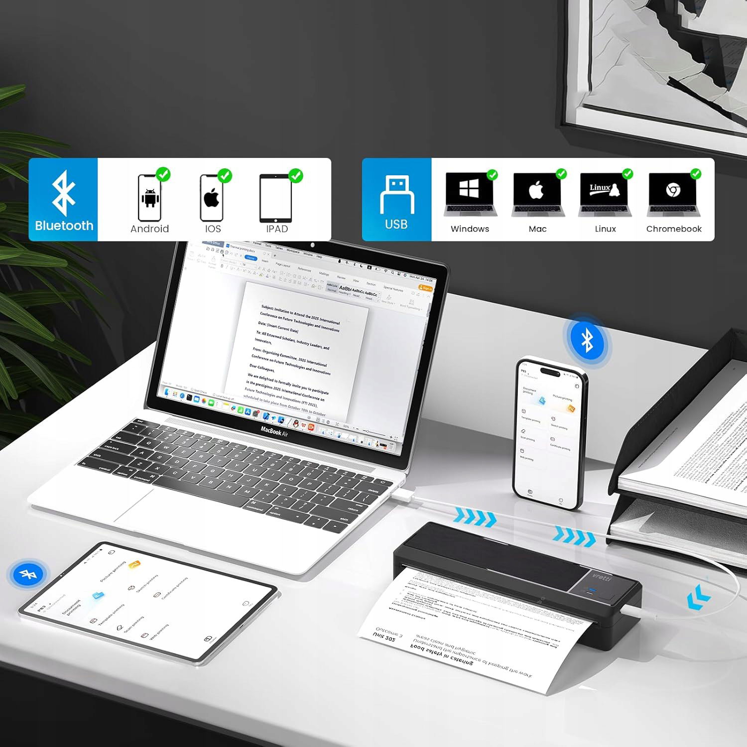 VRETTI P83 Przenośna Drukarka Termiczna A4 Android/iOS 2600mAh BT Czarna
