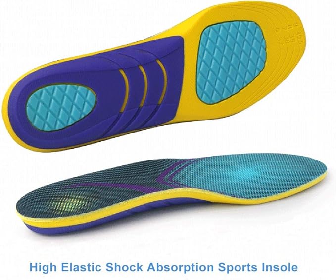 - POPRAW WYDAJNOŚĆ WKŁADKI DZIĘKI WIELOWARSTWOWEJ KONSTRUKCJI MATERIAŁOWEJ: przednia i tylna podkładka żelowa, podwójna amortyzacja i amortyzacja, wsparcie korekcji łuku TPU, dodatkowe wsparcie dla maksymalnego komfortu, warstwa amortyzująca z pianki memory z poliuretanu, głęboka pięta w kształcie litery U zapewniająca stabilną piętę, ze śródstopiem punkt masażu, trzypunktowa mechanika utrzymująca stopy w prawidłowej anatomicznej pozycji.
