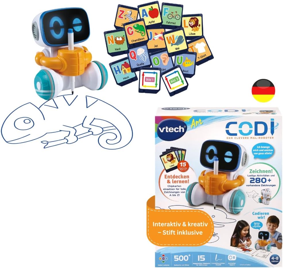 robot Codi maluje wspaniałe rysunki w różnych trybach, które można dalej kształtować przez dzieci, mówi i śpiewa podczas malowania