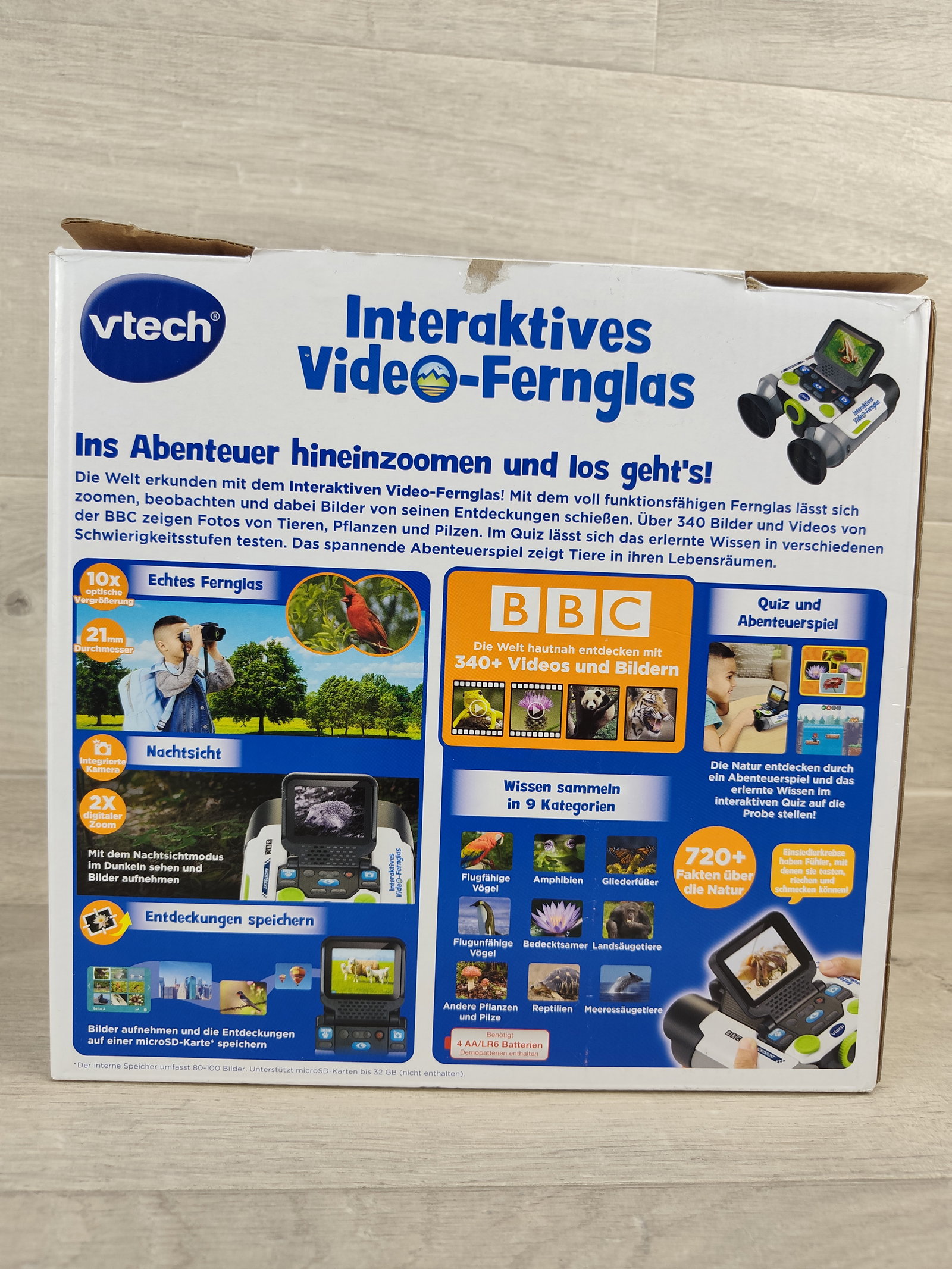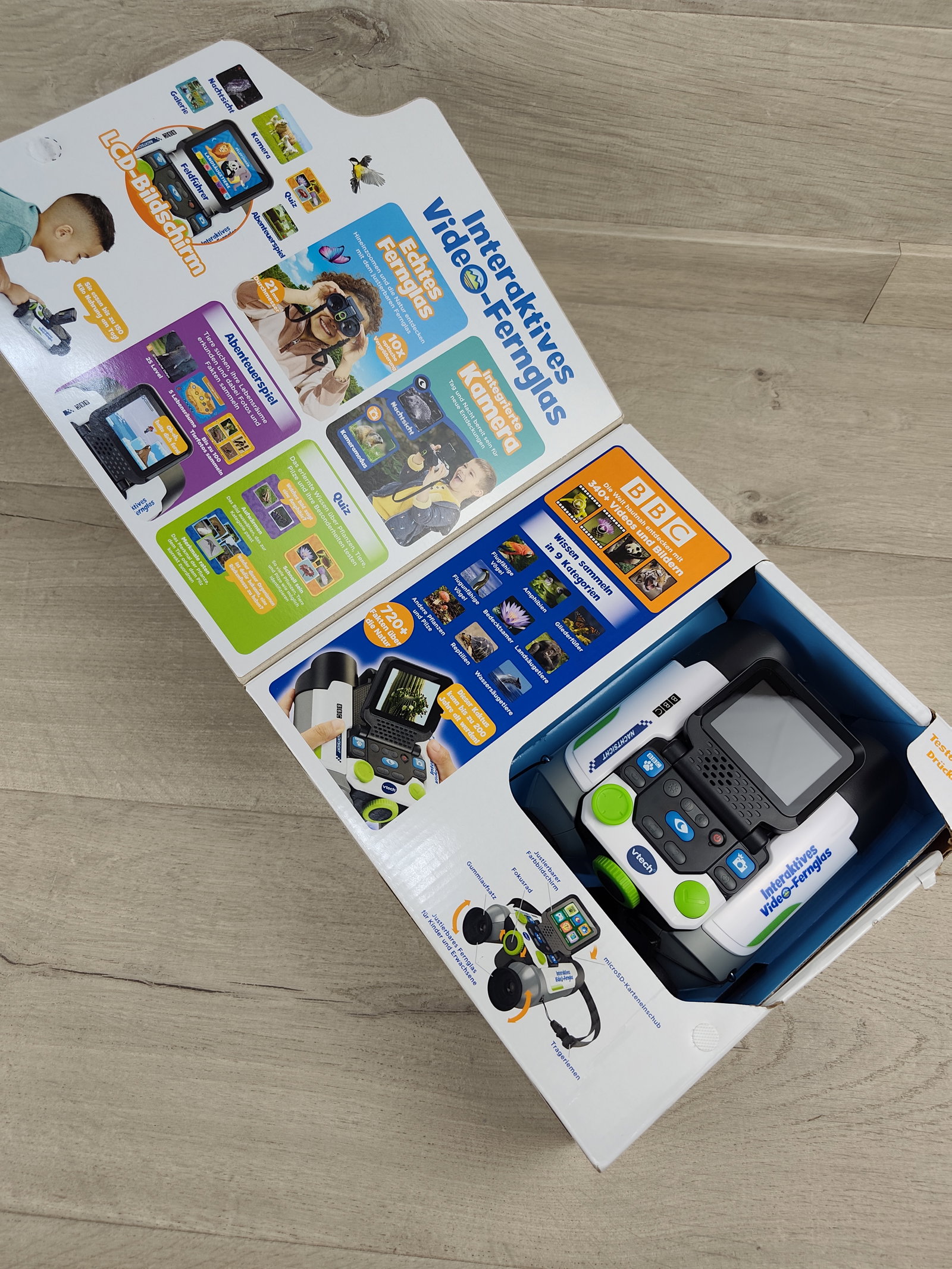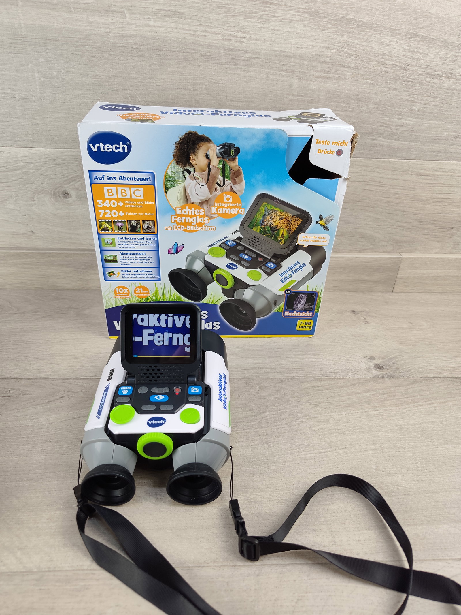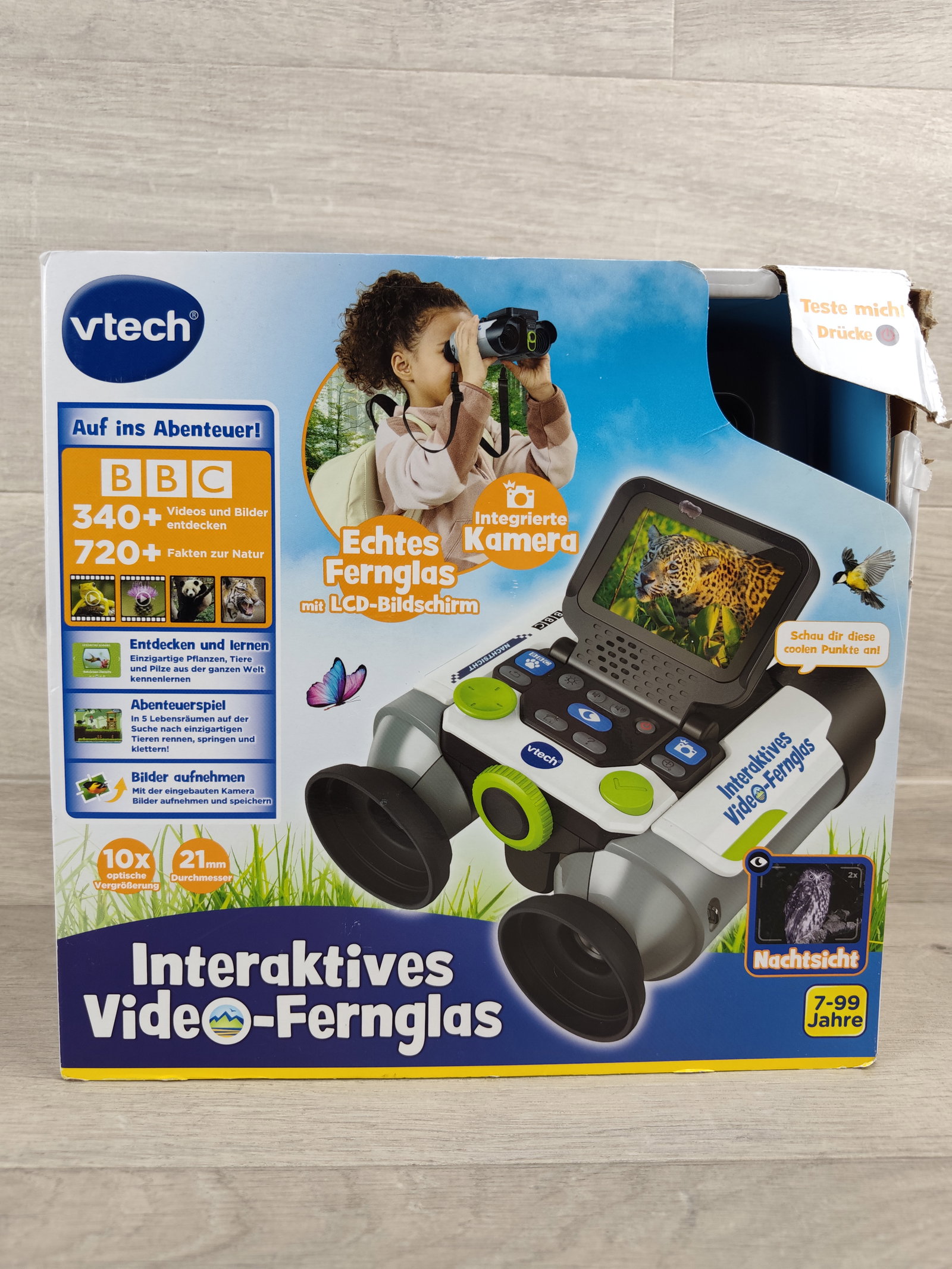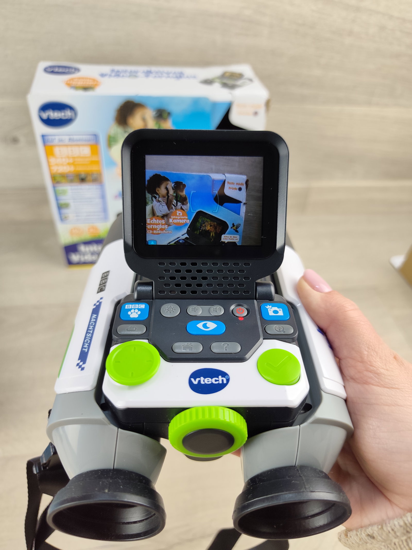 🔭 VTech Interaktywna Lornetka Wideo – wersja niemiecka Nowoczesna lornetka wideo dla młodych odkrywców w wieku 7–99 lat! Urządzenie łączy funkcję lornetki z wbudowaną kamerą, ekranem LCD oraz bogatą bazą multimediów BBC. Pozwala obserwować naturę, robić zdjęcia, nagrywać filmy i poznawać świat dzięki setkom ciekawostek 🌿🦊📸