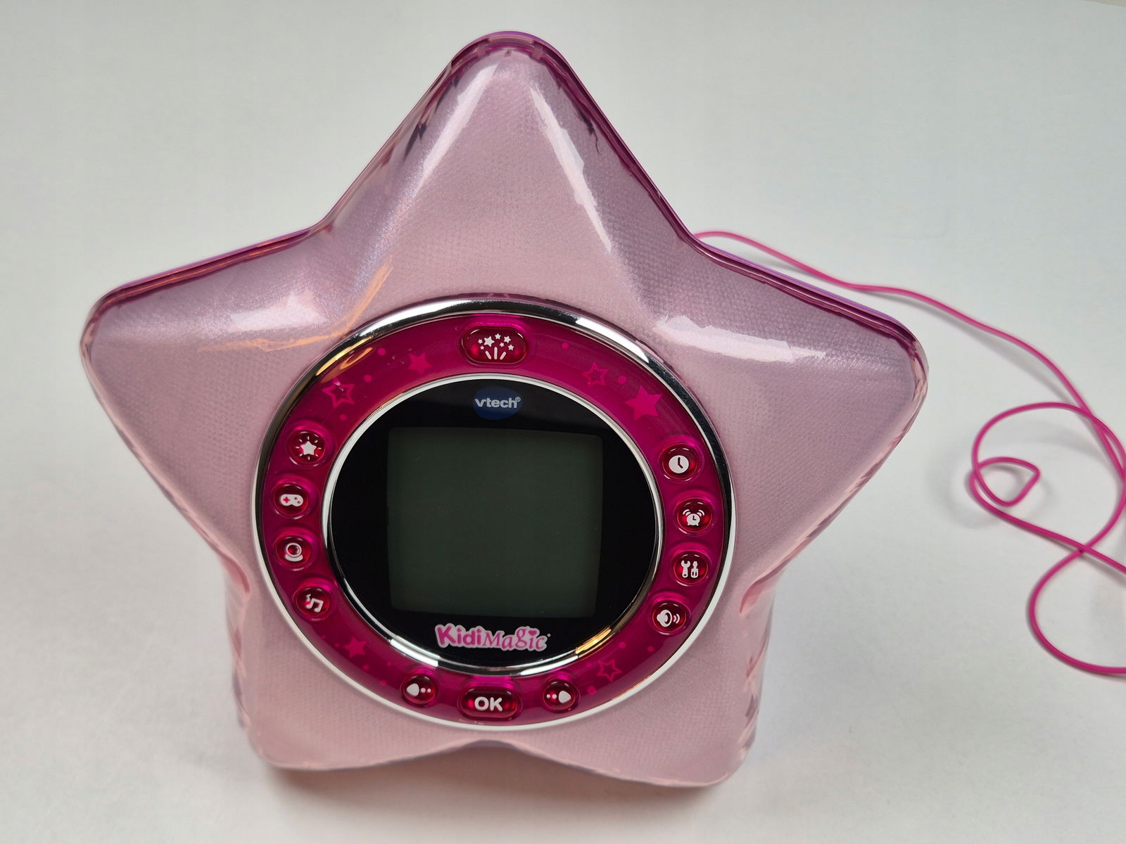 KidiMagic to elektroniczny budzik, radio i projektor w jednym urządzeniu. Wyświetla czas zarówno na ekranie, jak i na suficie dzięki wbudowanemu projektorowi z tyłu obudowy. Urządzenie pozwala na personalizację ekranu – do wyboru ponad 10 animowanych wzorów.