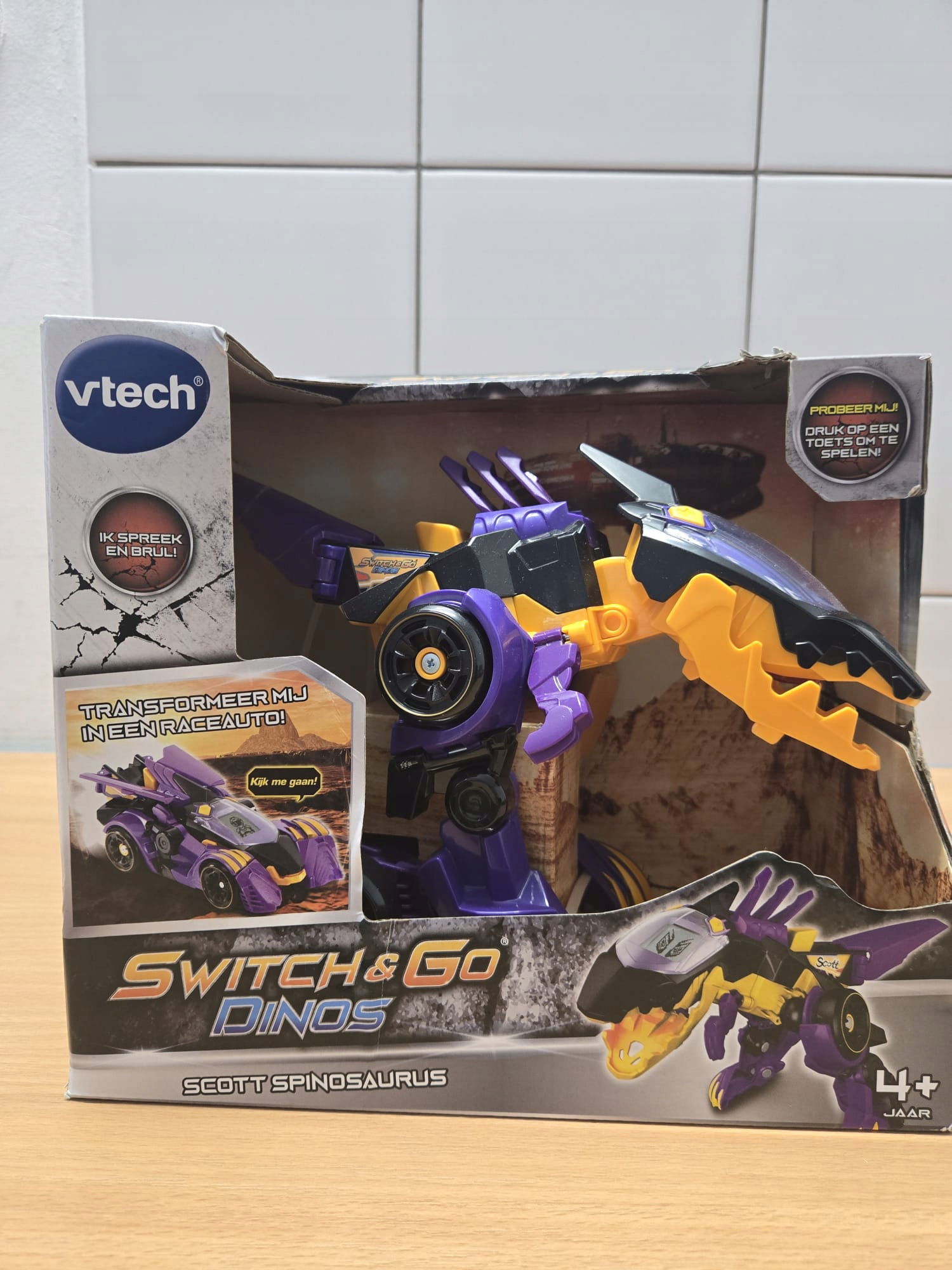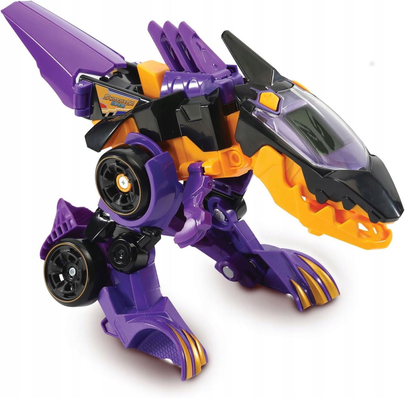 Scott Spinozaur z serii VTech Switch And Go Dinos to interaktywna zabawka 2 w 1: dinozaur, który jednym ruchem zmienia się w samochód wyścigowy. Posiada ekran LCD z animacjami, światło, ruchome elementy i ponad 60 dźwięków oraz kwestii głosowych. Idealna zabawka do rozwijania wyobraźni dziecka – szybka transformacja, efekty świetlne i dźwiękowe zachęcają do zabawy. Przeznaczona dla dzieci od 4 lat.