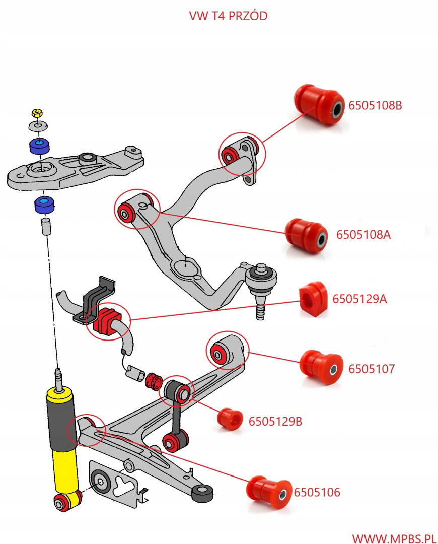 VW T4 Tuleje wahaczy przednich komplet zawieszenia Poliuretan