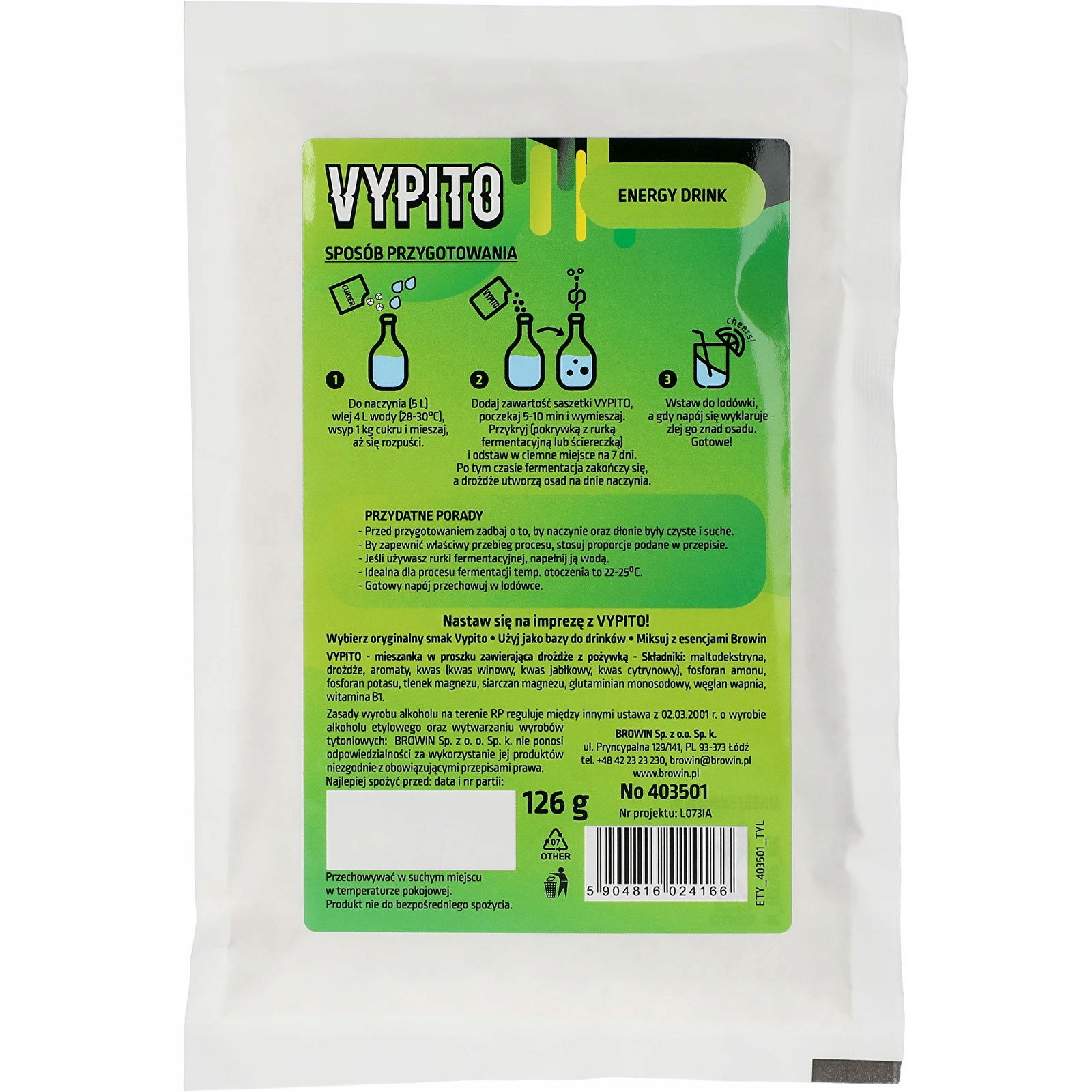 VYPITO 12%, saszetka na 18 drinków - Energy drink, 126 g