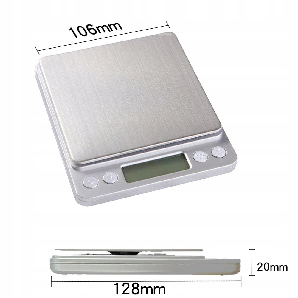 Kolor wagi: srebrny Zakres pomiaru: 0 - 500g Dokładność pomiaru: 0,01 g Jednostki miary: g/oz /ozt /dwt/ct /gn Funkcja: TARA Funkcja: liczenia przedmiotów Funkcja automatycznego zerowania wagi przy włączeniu Wskaźnik przeładowania Wskaźnik słabej baterii Funkcja automatycznego wyłączenia Auto Off 60 sekund Zasilanie: 2x bateria AAA (w zestawie) Szalka ze stali+ 2 zdejmowane pojemniki Wykonana z wysokiej jakości materiałów Wymiary wagi: 12,8 x 10,6 x 2 cm➡️ IDEALNA DO WAŻENIA:
