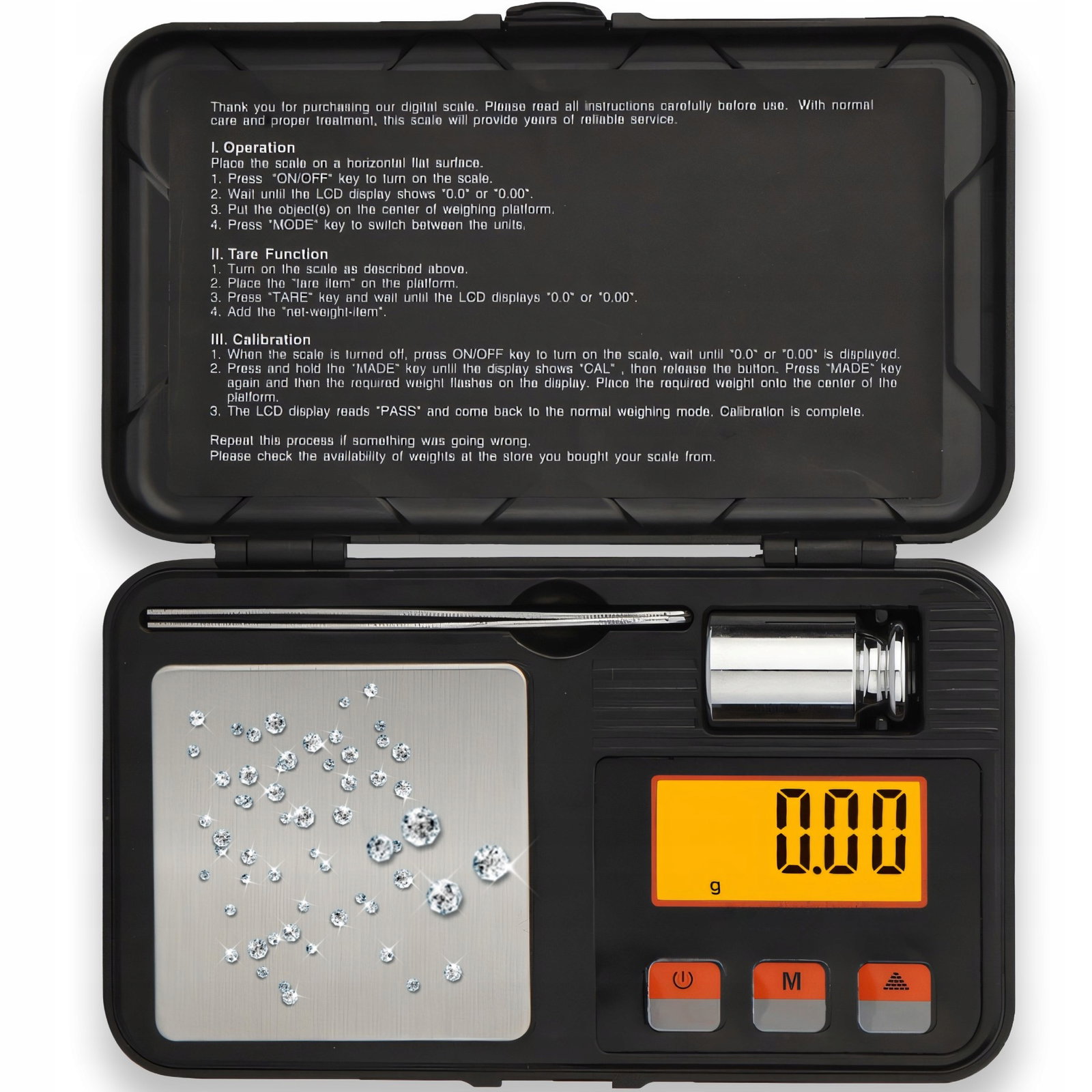 ✍️ Dokładność pomiaru 0,01g ☺️ Zakres do 200g ☀️ Odważnik kalibracyjny 50g ✔️ Pęseta w zestawie ✏️ Tacka do odmierzania ✉️ 6 jednostek pomiarowych ♥️ Podświetlany wyświetlacz LCD ♠️ Zasilanie bateryjne ♣️ Etui ochronne ✔️ Wysoka precyzja ⭐