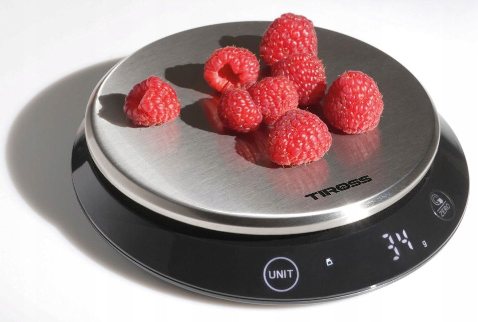 Okrągła waga elektroniczna z dużą powierzchnią wagową ze stali nierdzewnej gwarantuje doskonałe wsparcie podczas kulinarnych eksperymentów.