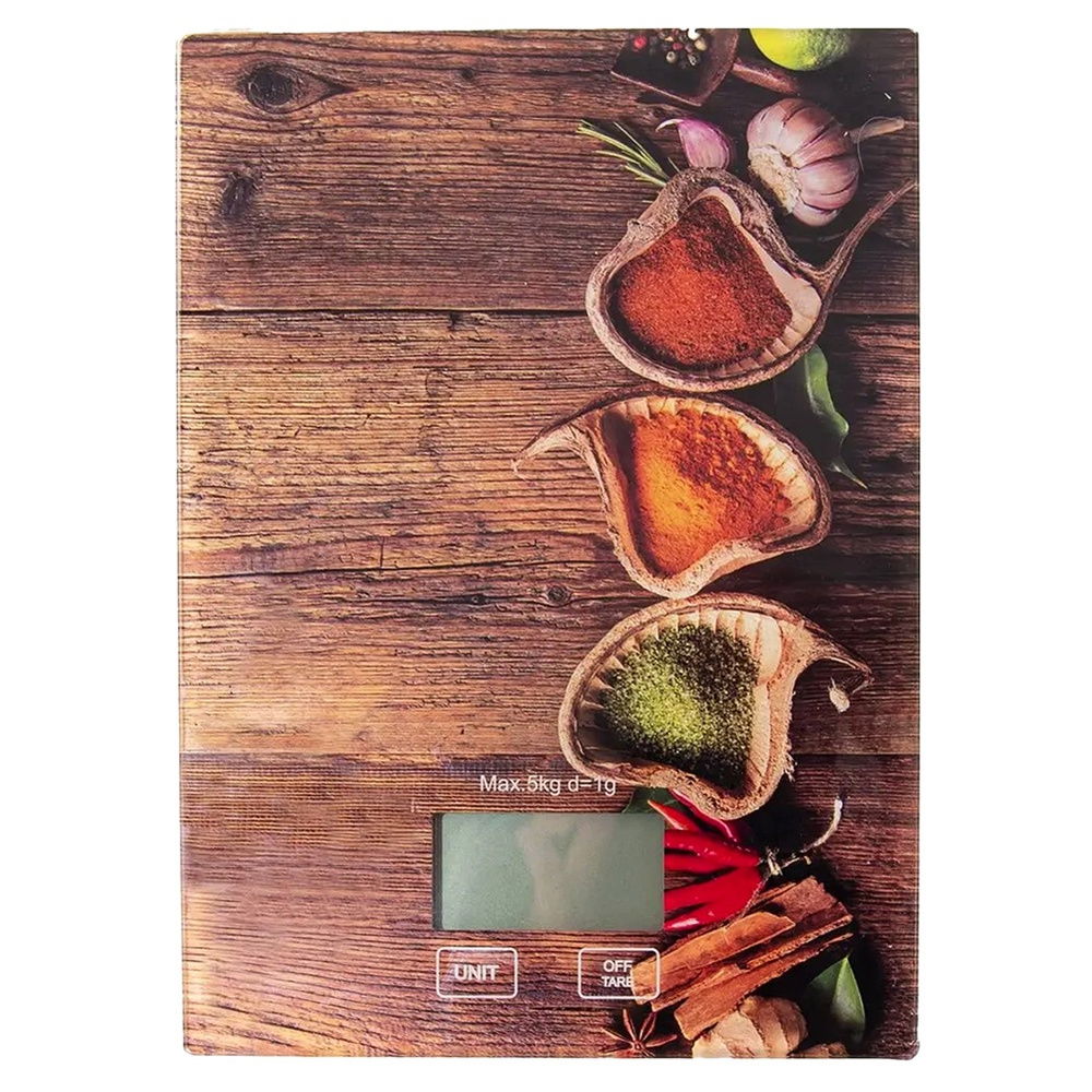 Wykonana z hartowanego szkła - Waga wykonana z hartowanego szkła oraz wysokiej jakości tworzywa. Posiada efektowny, kuchenny dekor na powierzchni, przedstawiający przyprawy.
