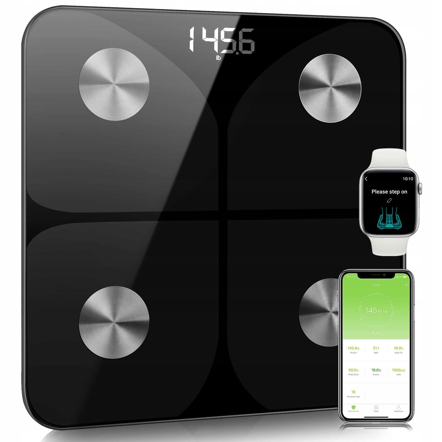 - 13 pomiarów stanu zdrowia ciała: Waga osobista Foryond wykorzystuje technologię bioimpedancji do pomiaru 13 ważnych informacji, w tym wagi, procentowej masy tłuszczu, wody, masy mięśniowej, białka, tłuszczu trzewnego, BMI (wskaźnik masy ciała), BMR (podstawowy metabolizm) itp. Dzięki temu zestawowi pomiarowemu masz możliwość uzyskania dokładniejszych i wyższych danych. Szczegółowe informacje o Twojej kondycji.