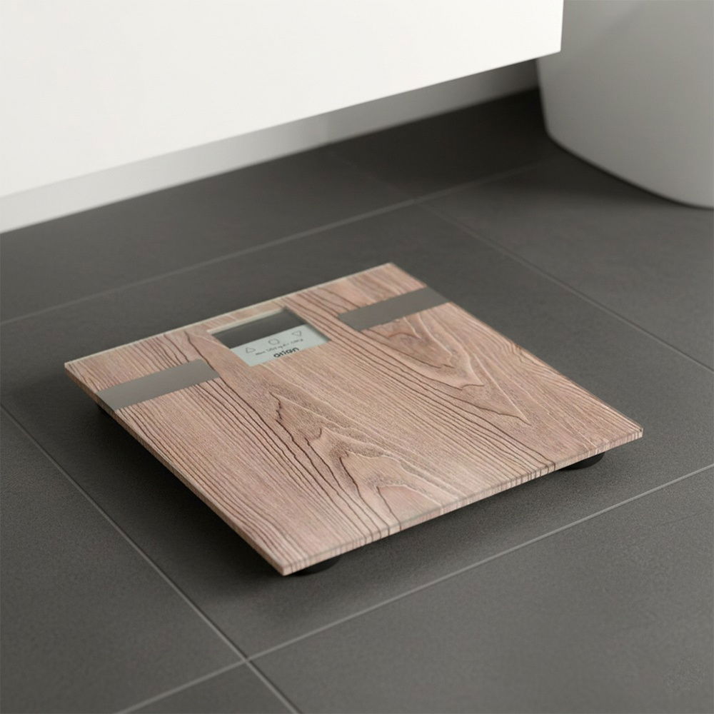 Wykonana ze szkła - Waga wykonana jest z najwyższej jakości trwałego szkła. Waga posiada elegancki wygląd w formie imitacji drewna, dzięki czemu pasuje do nowoczesnych wnętrz. Spód wagi wykonany jest z tworzywa w czarnym kolorze.