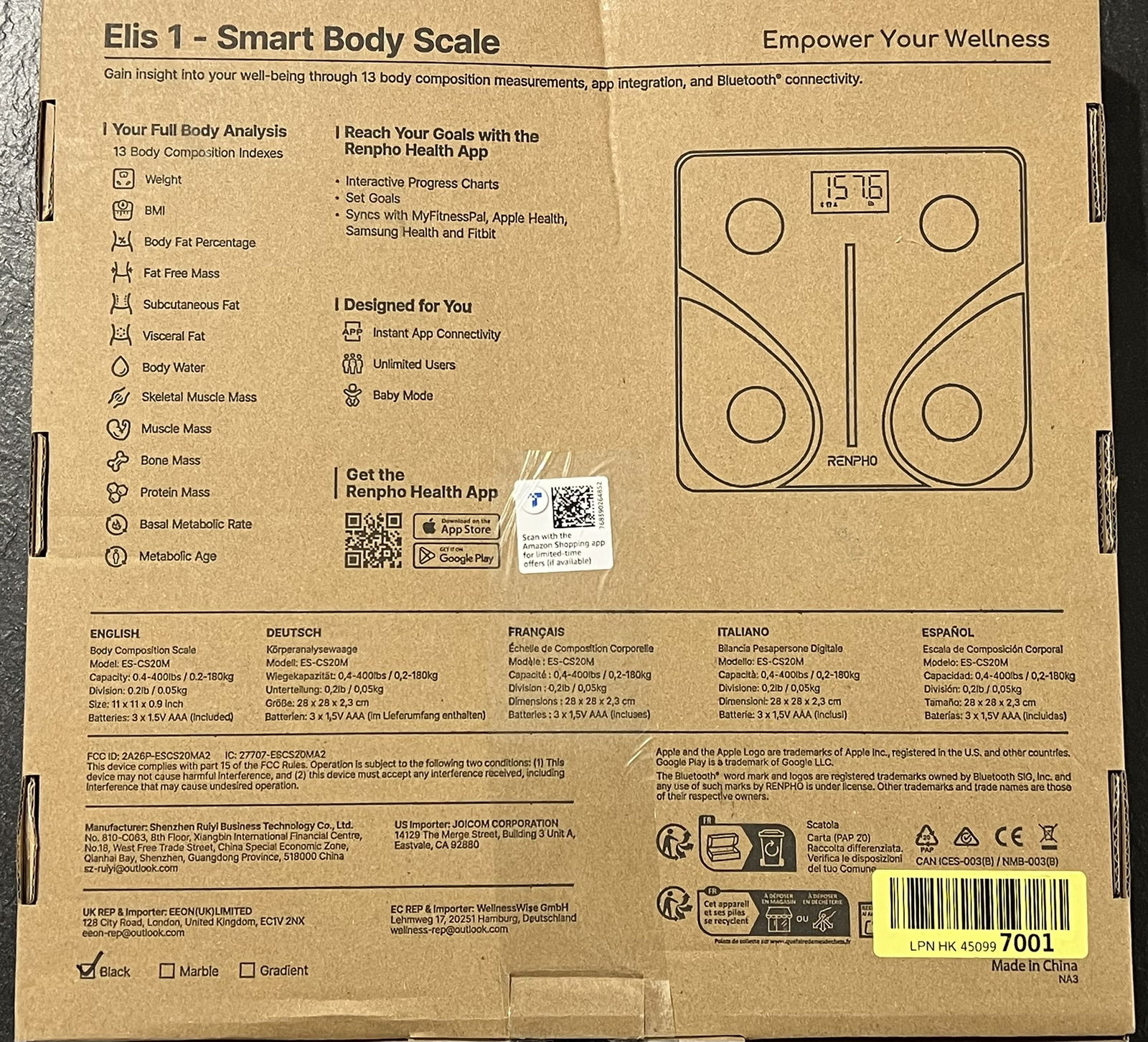 Waga łazienkowa Renpho ESCS20M Kolor Czarny
