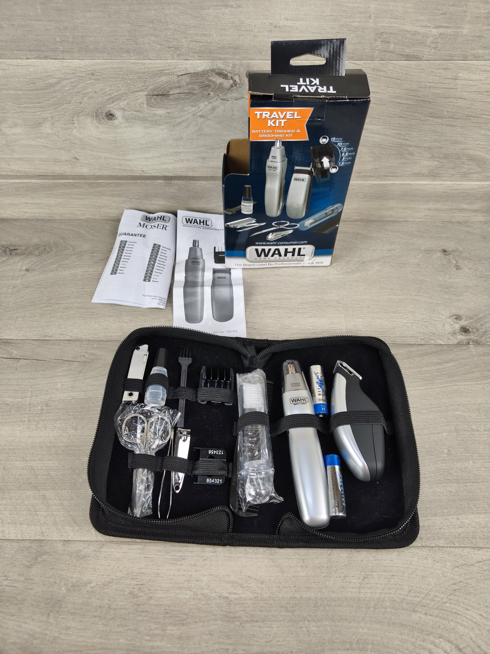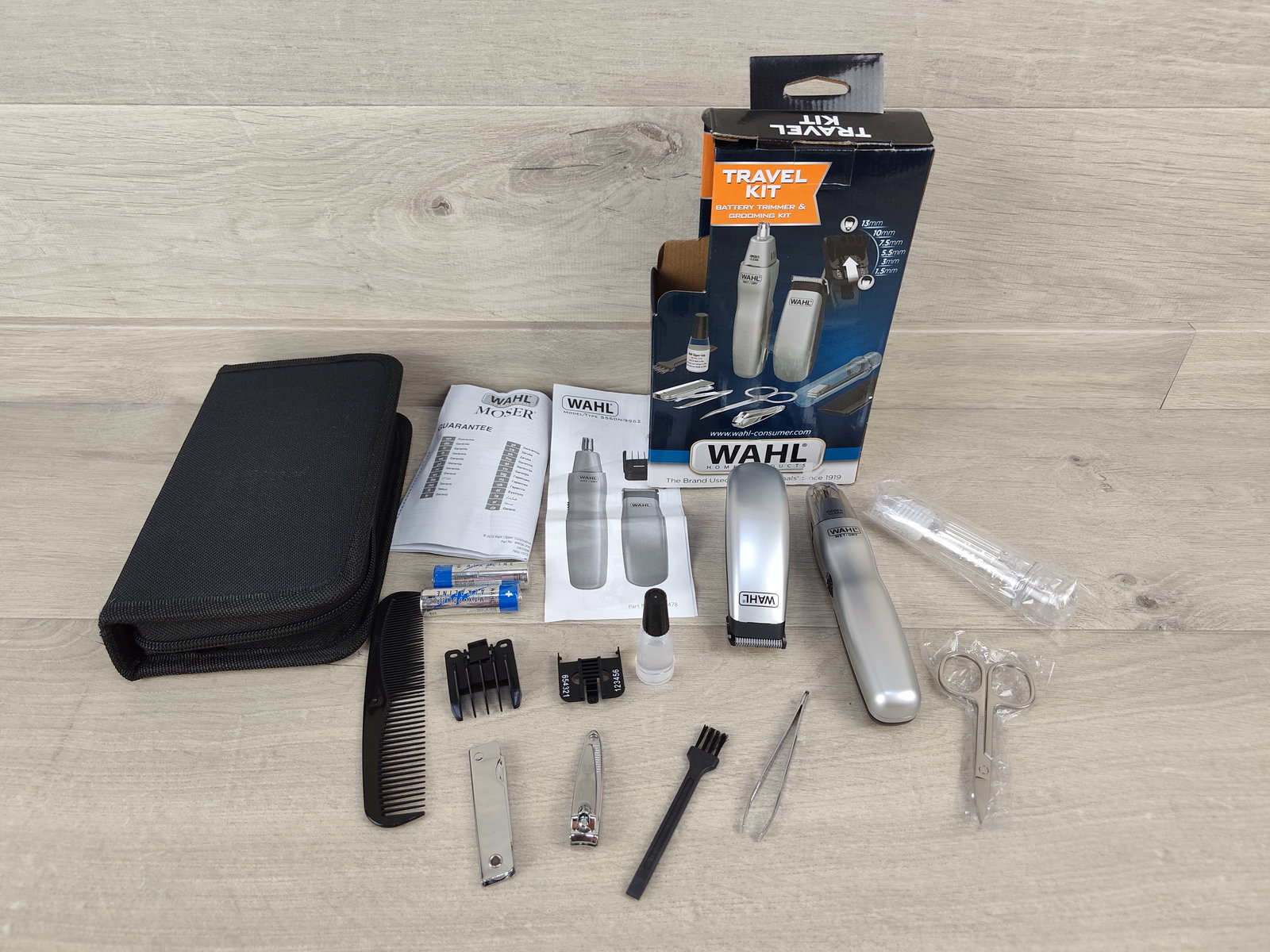 ✈️ Wahl 9962‑1816 Travel Set to kompaktowy, bateryjny zestaw do pielęgnacji dla mężczyzn, idealny w podróży i na co dzień. W skład zestawu wchodzi trymer do brody oraz trymer do nosa i uszu, oba wyposażone w precyzyjne stalowe ostrza, które zapewniają dokładne i bezpieczne przycinanie.
