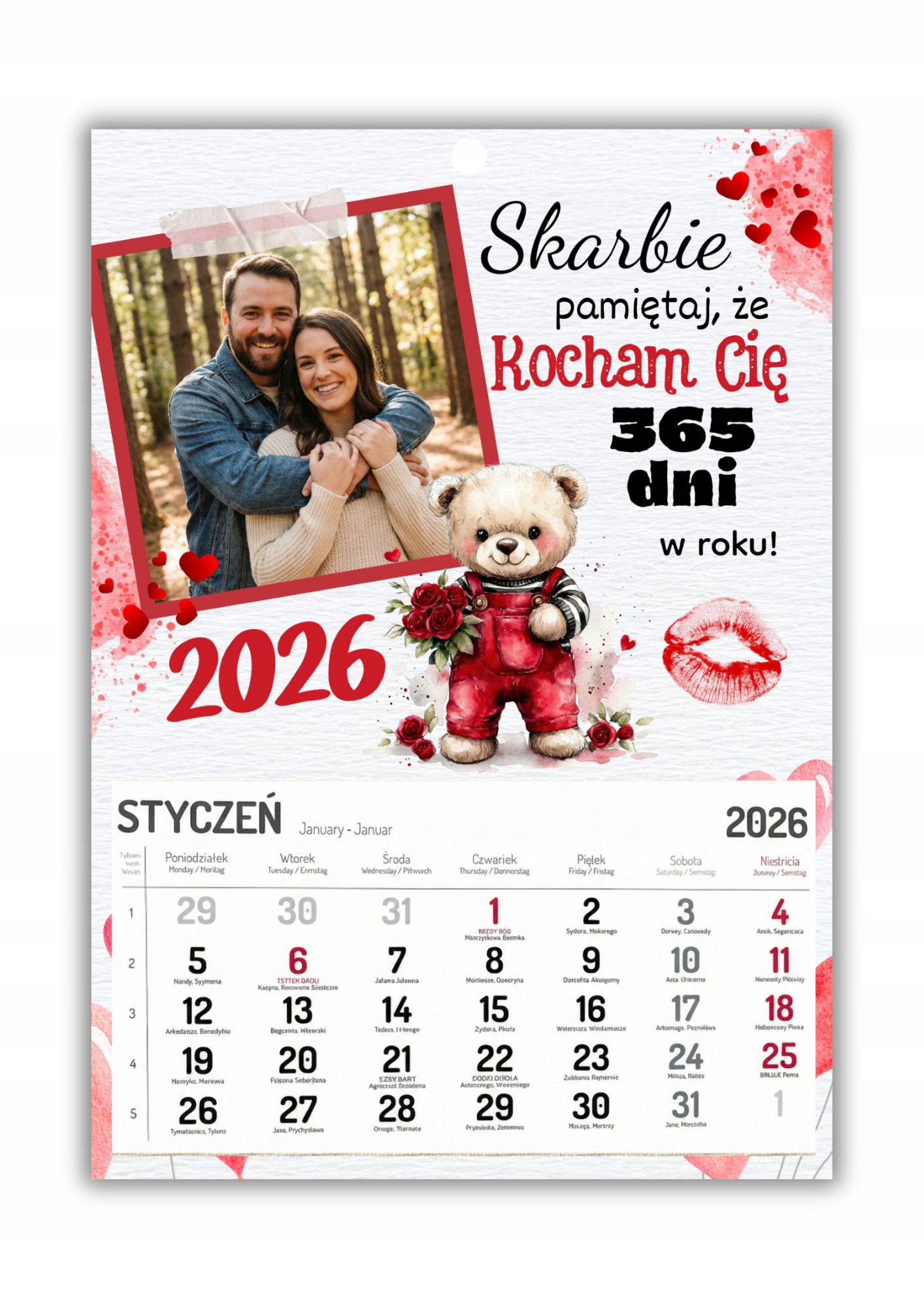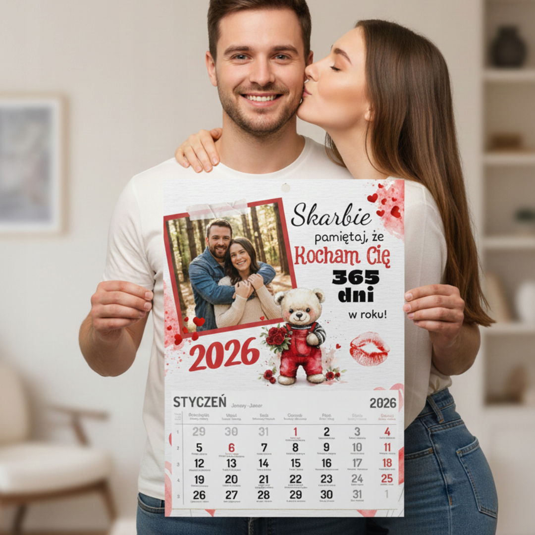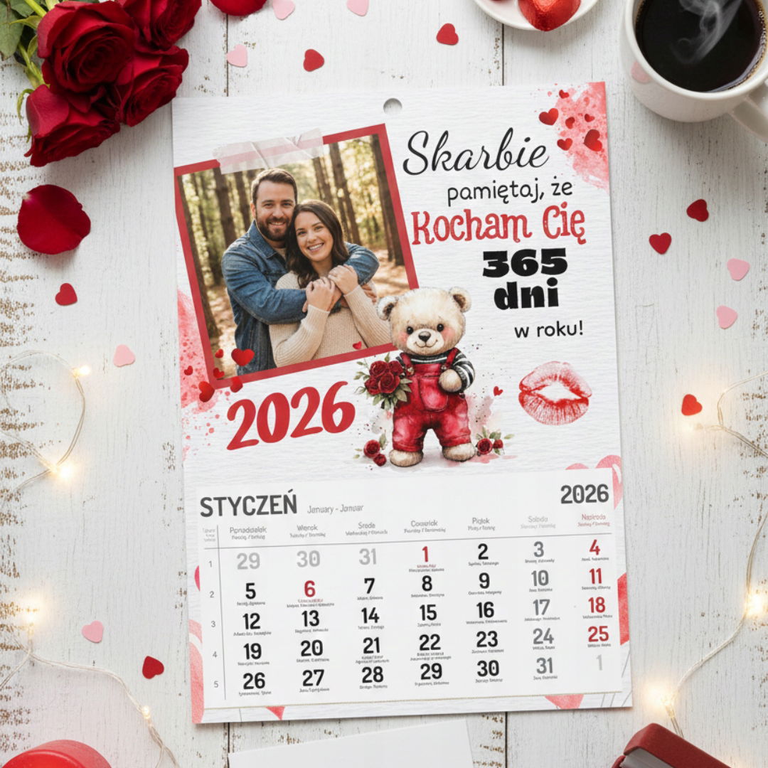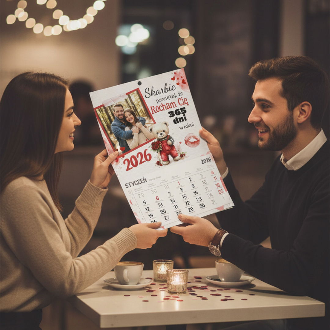 Szukasz wyjątkowego sposobu, aby powiedzieć „Kocham Cię”? Podaruj bliskiej osobie prezent, który przez cały rok będzie przypominał o Waszych najpiękniejszych chwilach! Nasz personalizowany kalendarz na rok 2026 to idealne połączenie praktyczności i romantycznego wyznania.