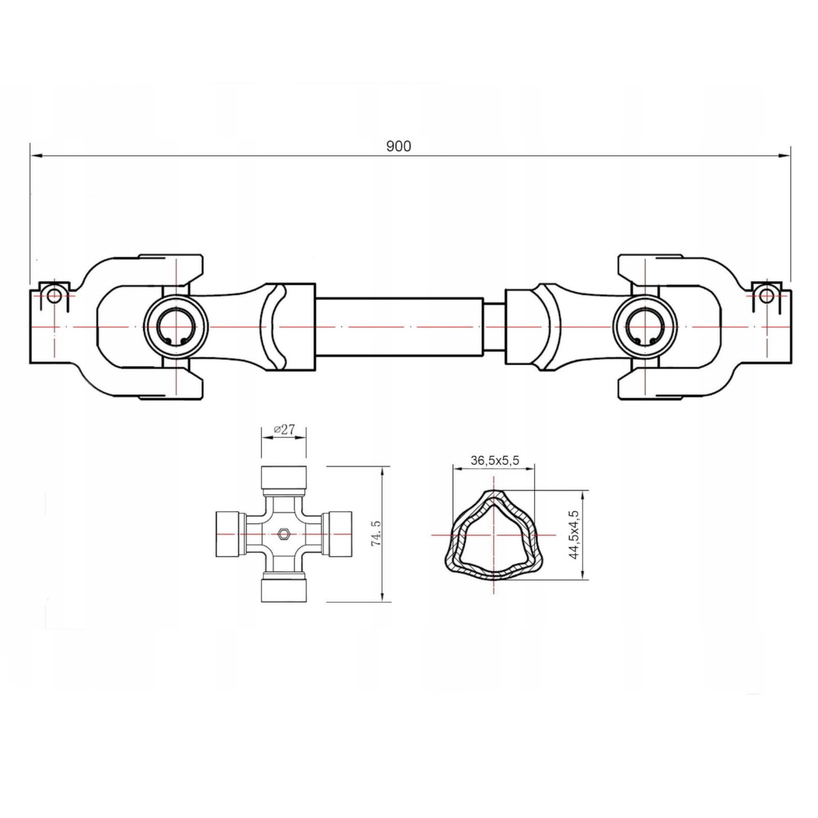 WAŁEK TRANSMISYJNY PRZEGUBOWO-TELESKOPOWY V65012 WAŁEK WOM 90CM RURA