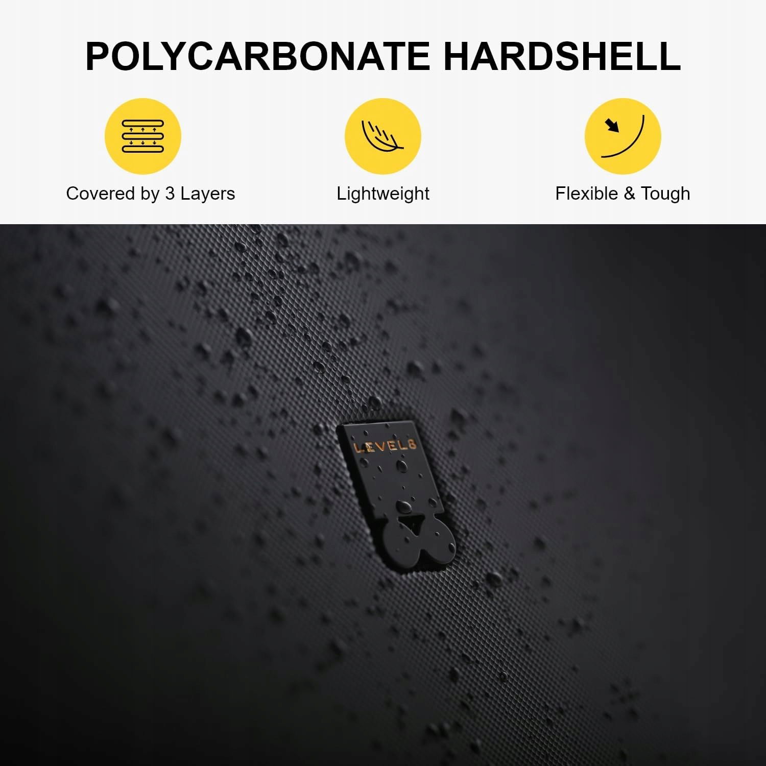 Materiał: lekka i twarda obudowa wykonana z 3-warstwowego 100% poliwęglanu Bayer. Wysoka wytrzymałość i trwałość zapewniająca sprężystość i elastyczność. Strukturalna konstrukcja z mikrodiamentami minimalizuje niepożądane ślady podczas testu.