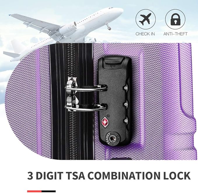 Zamek TSA: walizki na kółkach z zamkiem TSA idealnie nadają się do podróży międzynarodowych, ponieważ zamek TSA zapewnia bezpieczeństwo wartościowych przedmiotów i że personel lotniska jest w stanie sprawdzić bagaż bez łamania zamka.