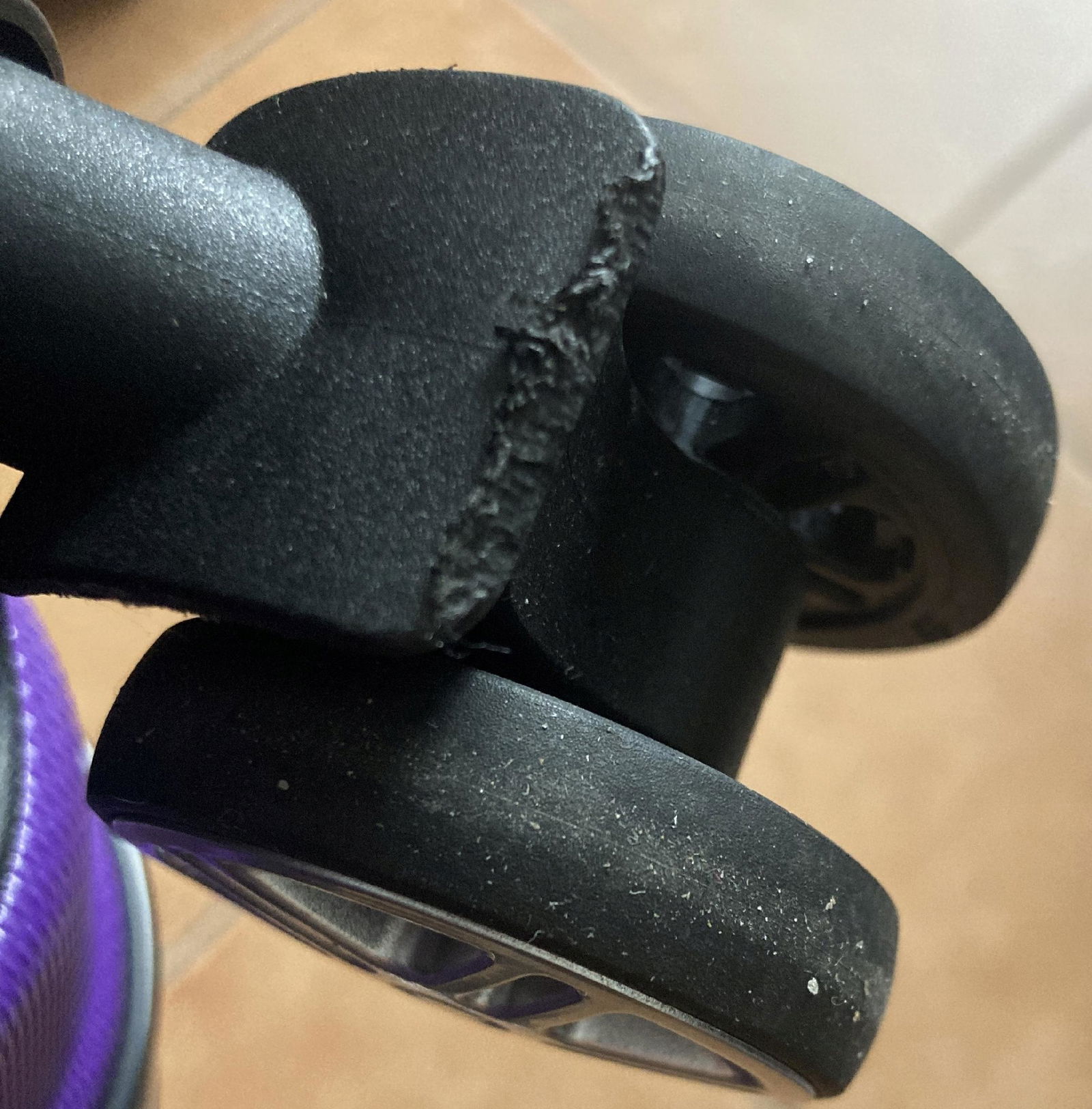 Produkt po zwrocie konsumenckim, posiada wady wizualne w postaci rysek, otarć. Uszkodzone 2 kółka, posiadają przetarcia gumy i przekręcają się z oporem. Zdjęcia poglądowe na dole oferty.