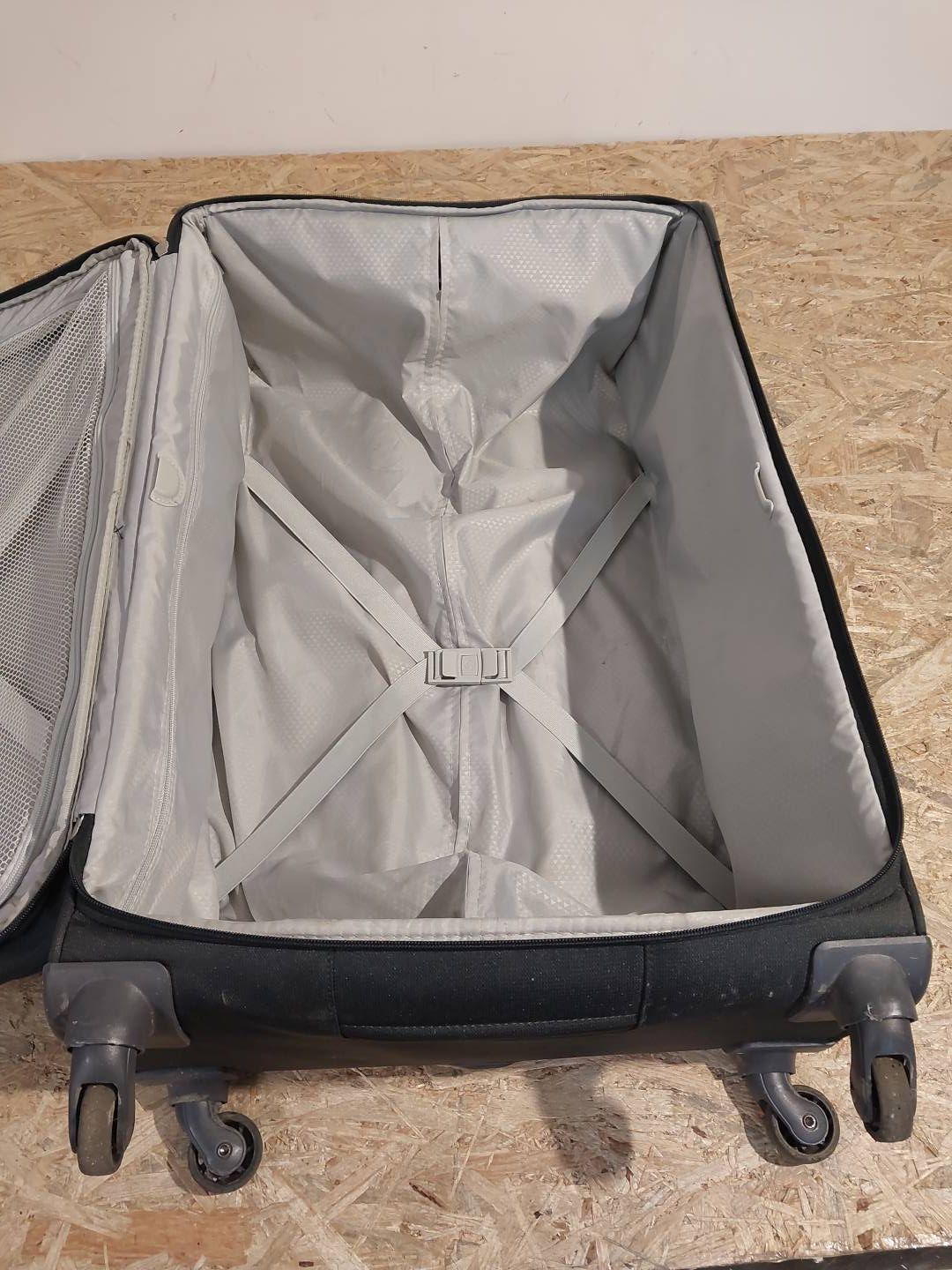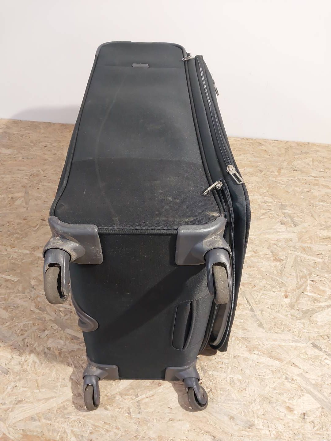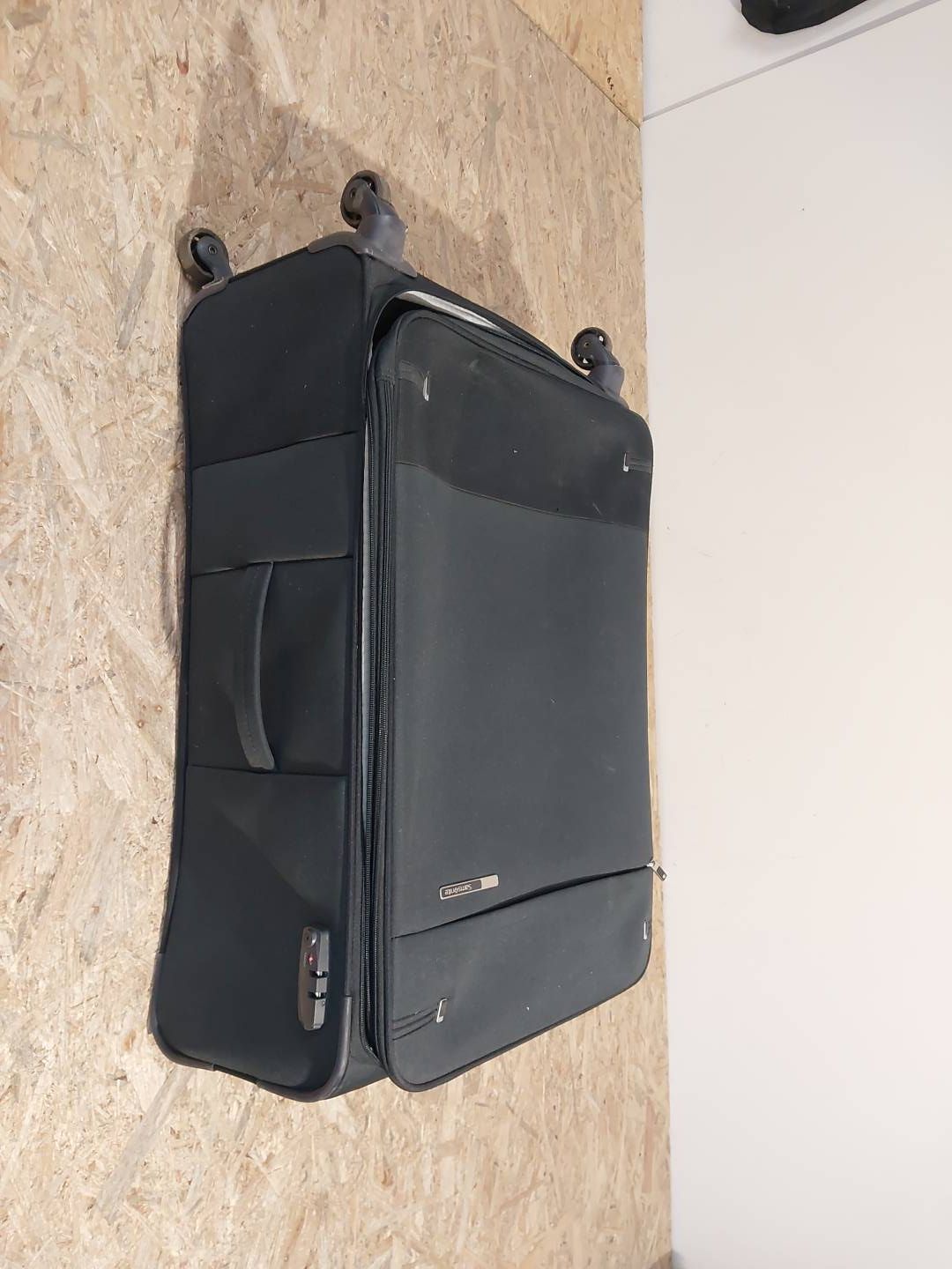 UWAGA PRODUKT POSIADA ZABRUDZENIA, PLAMY, ZARYSOWANIA, ZŁAMANĄ ROZKŁADANĄ RĄCZKĘ, ZNISZCZONE KOŁA, BRAK KODU DO ZAMYKANIA