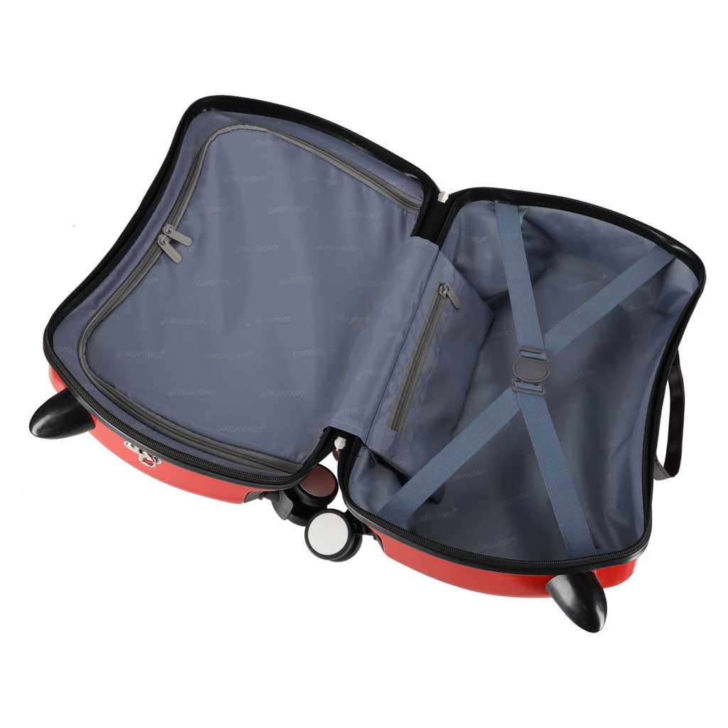 - Funkcja jeździka - sprawia, że mała walizka podróżna ułatwia przemieszczanie się po lotnisku, pozwalając dziecku wygodnie odpocząć podczas jazdy