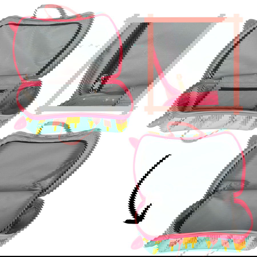 IDEALNA WALIZKA NA PODRÓŻE Z DZIEĆMI - Walizka podróżna dla dzieci z uroczą grafiką zwierząt to doskonały sposób na ułatwienie podróży z maluchami. Wyposażona w cztery kółka i wygodne rączki, umożliwia łatwe prowadzenie lub noszenie. Funkcja siedziska i jeździka sprawia, że dziecko może odpocząć podczas długich przesiadek, a stabilne podpórki pod nogi zapewniają wygodę i bezpieczeństwo.