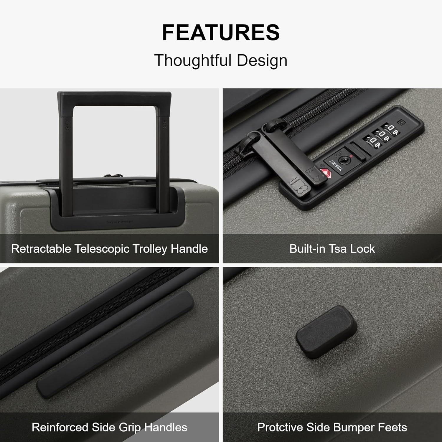 Walizka LEVEL8 Elegancki bagaż podręczny Matowa 100% PC Walizka na kółkach z organizerem na walizkę podróżną Zestaw 4 sztuk, Walizki z 4 podwójnymi kółkami obrotowymi i zintegrowanym zamkiem TSA, 55 CM, 40 l, zielona