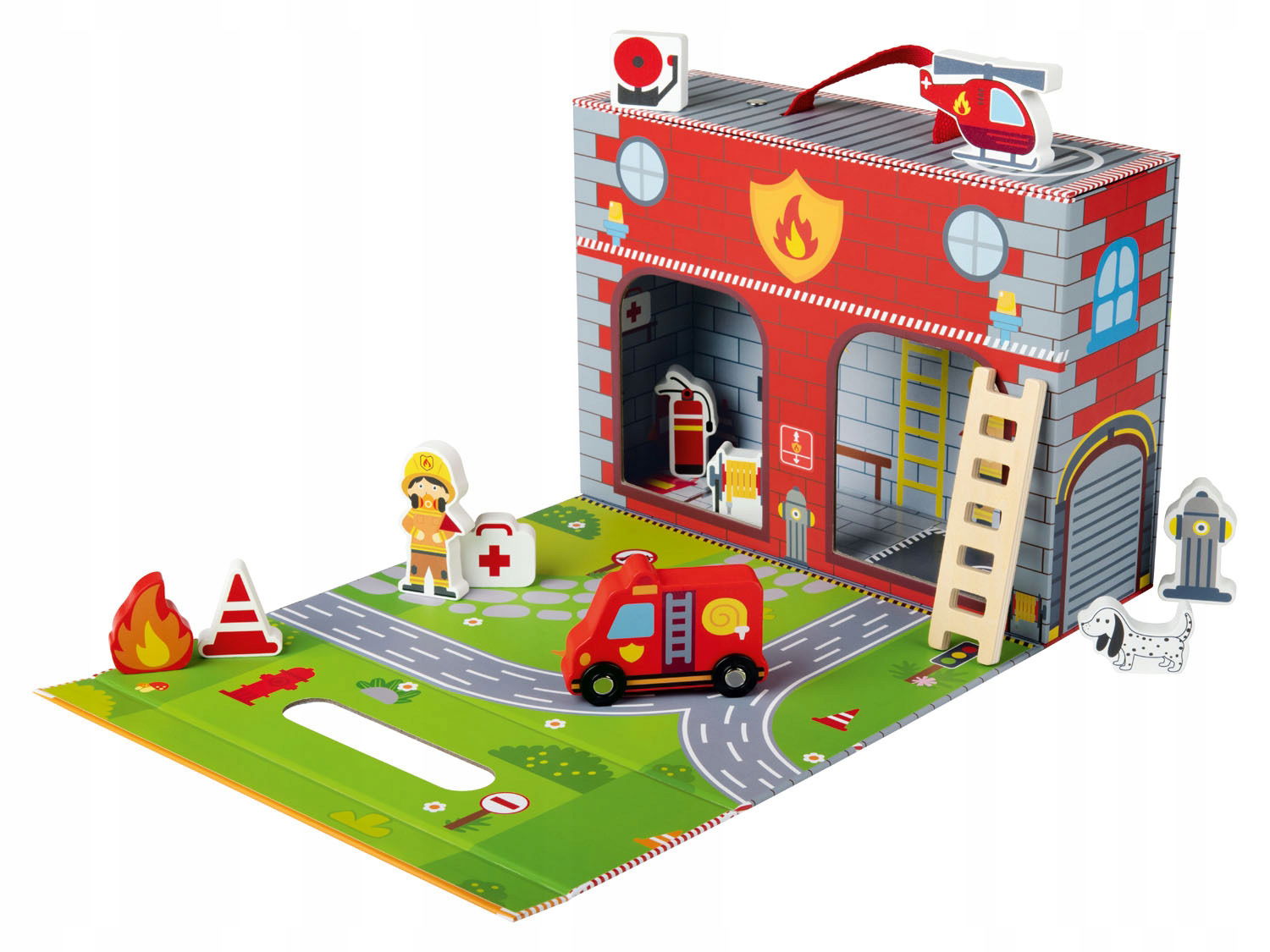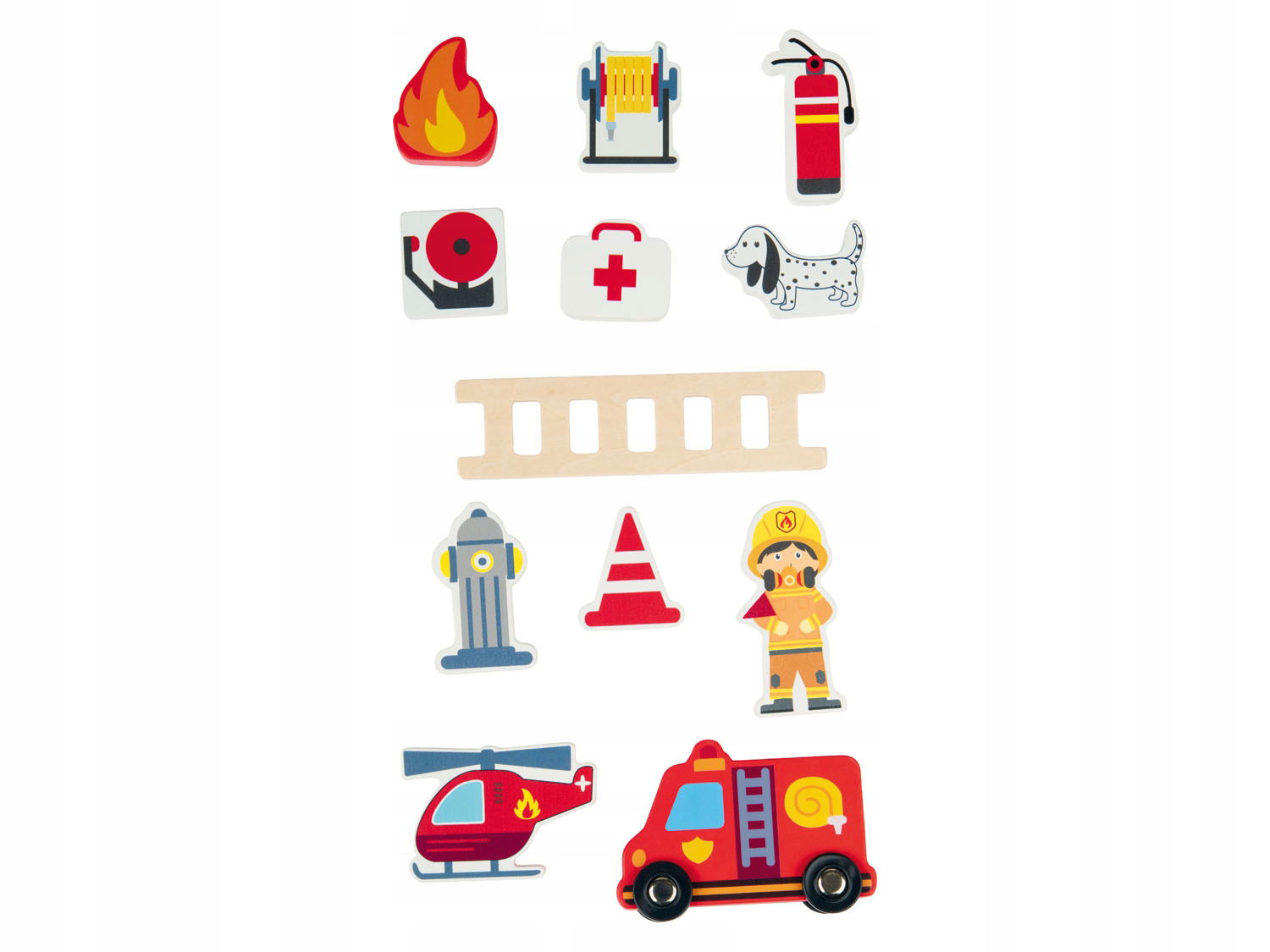 • 13 elementów w zestawie – różnorodne akcesoria do zabawy w straż pożarną