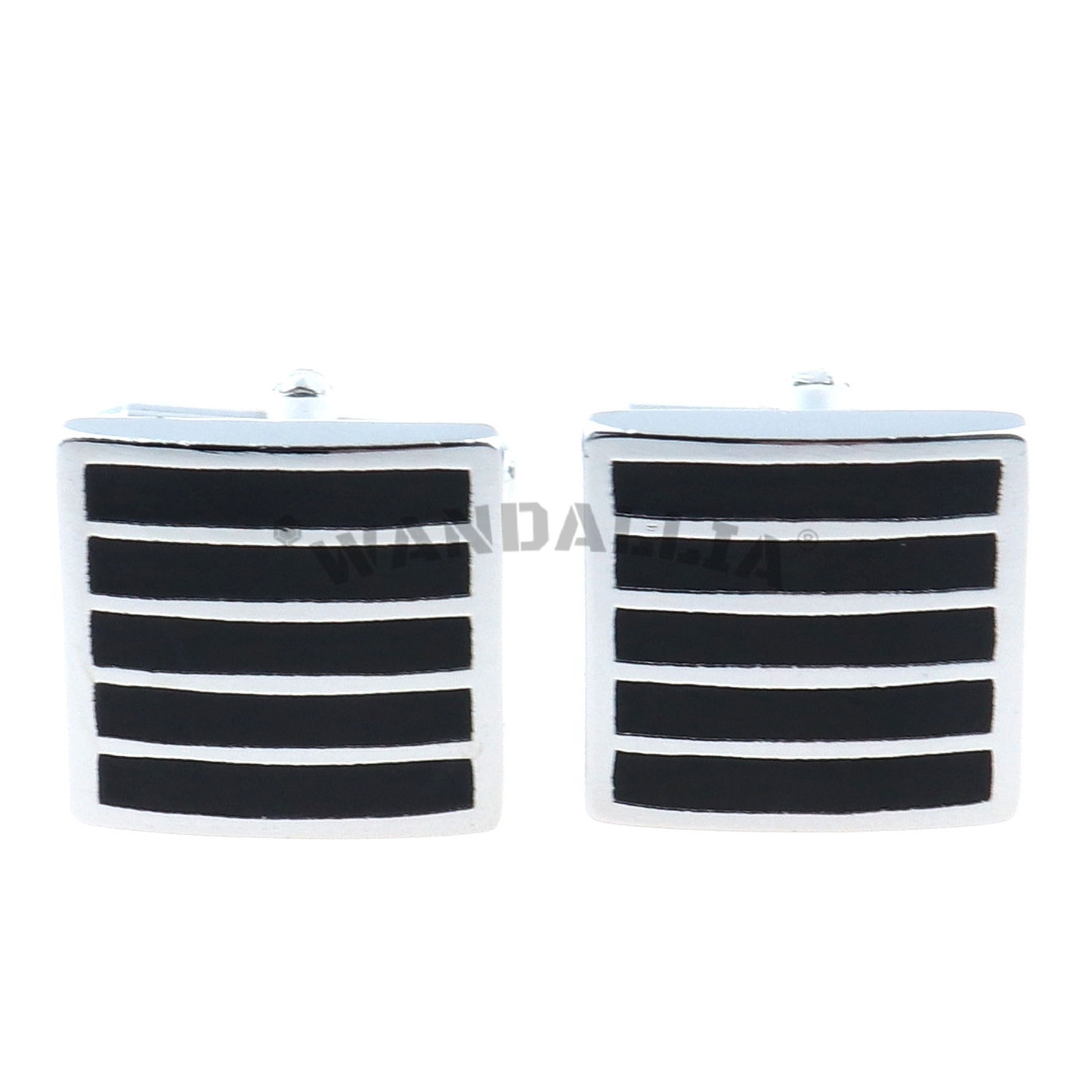 Wzór powstał z odlewu czarnej żywicy epoksydowej i stopu metalu. Efekt połączenia dwóch materiałów został uzyskany przez wypolerowanie powierzchni elementu ozdobnego spinki.