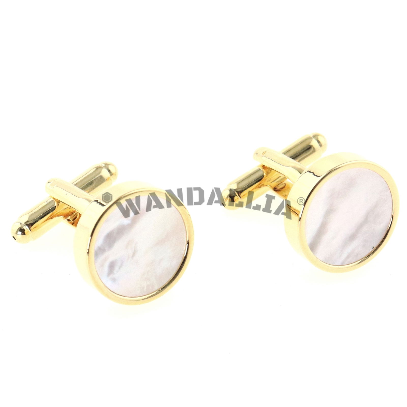 Klasyczne i stonowane w wyglądzie. Wzór powstał z połączenia elementu ozdobnego spinki z odlewem wysokiej jakości żywicy perłowej, bardzo dobrze imitującą naturalną masę perłową.