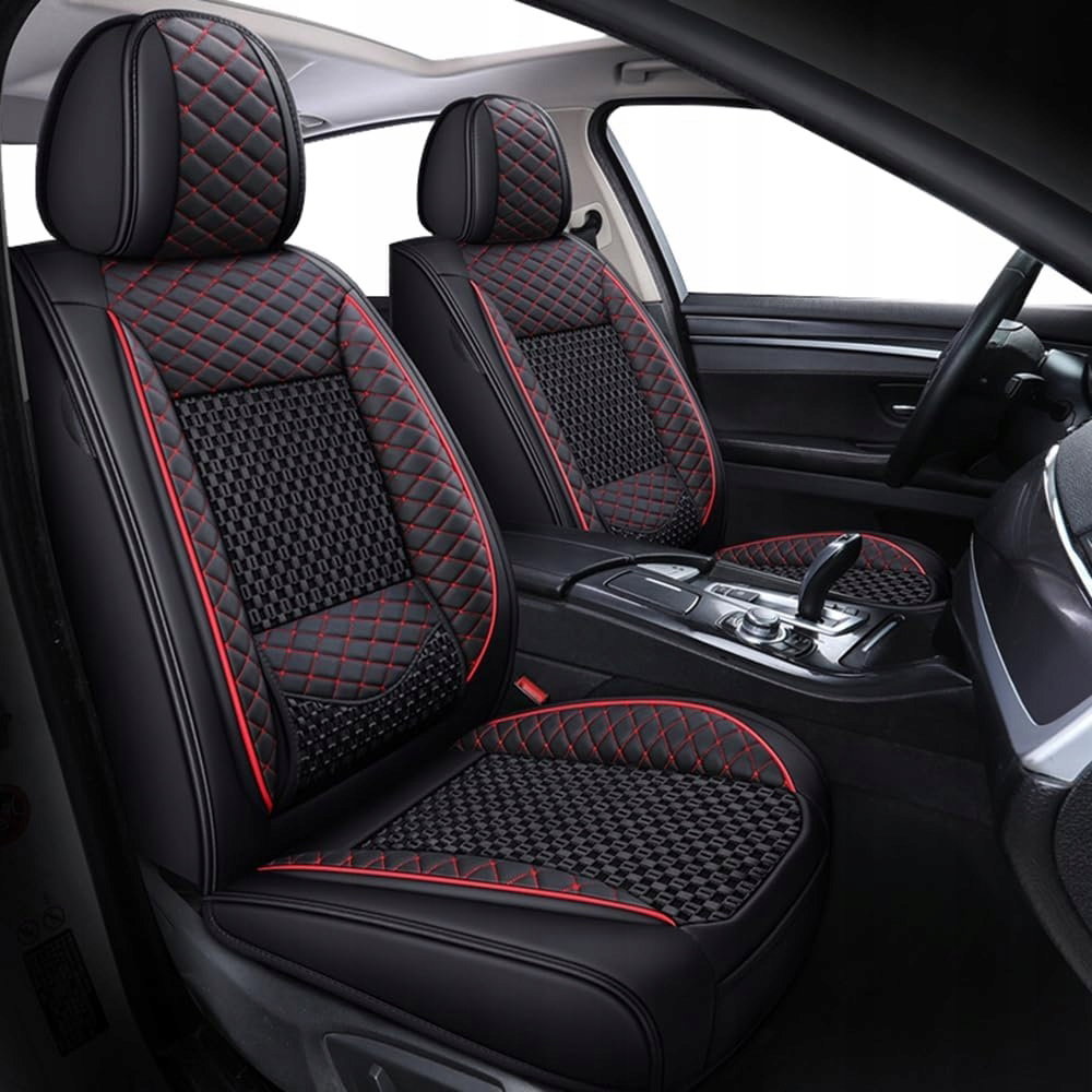 WANGIRL Skórzane pokrowce na przednie siedzenia - czarno-czerwone (2 szt.)