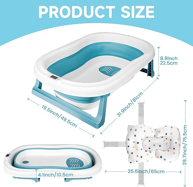 Super duża przestrzeń: Nasza ekstra duża wanna ma wymiary 81x50x23cm, co jest o 50% większe niż inne podobne produkty. Oferuje więcej przestrzeni, aby kąpiel była przyjemniejsza dla dziecka, bez uczucia przytłoczenia i umożliwia cieszenie się kąpielą w pełni. Może towarzyszyć Twojemu dziecku od noworodka do 6. roku życia