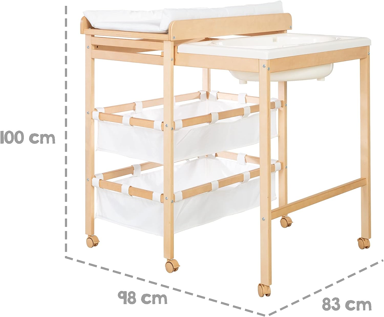 Jednym ruchem ręki można przekształcić stół do przewijania w możliwość kąpania