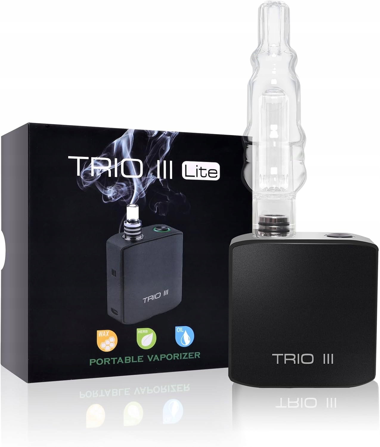 Trio III Waporyzator do ziół – szybka wymiana komory, wymienna bateria 18350, przenośny, mini dmuchawa wodna, szklany ustnik, parownik Cannbis