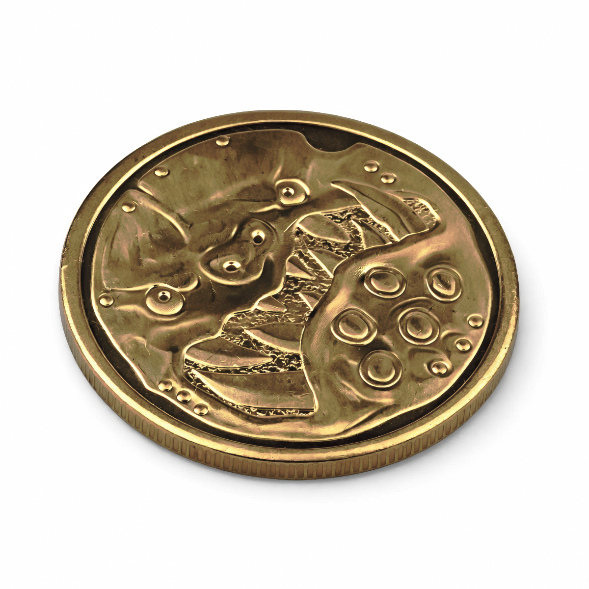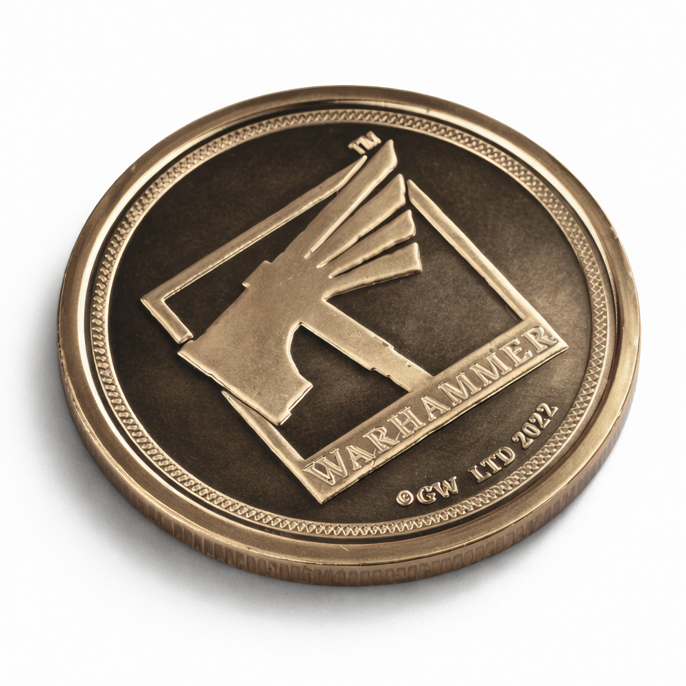 W brutalnym świecie Warhammera każdy symbol niesie ciężar niezliczonych bitew – i właśnie takim symbolem jest moneta Warhammer World – Orruk. Wykonana z solidnego metalu o antycznym, mosiężnym wykończeniu, ma 32 mm średnicy i emanuje charakterem godnym wojowników Ironjawz. Z jednej strony widnieje klasyczne logo Warhammera w precyzyjnym reliefie, otoczone subtelnym ornamentem na krawędzi, podkreślającym oficjalny charakter monety. Na odwrocie — złowrogi uśmiech Orruka, z wyszczerzonymi zębami i dzikim wyrazem twarzy, oddany z surową fakturą metalu, jakby wyrzeźbioną samą siłą Destrukcji. Ciemny, postarzały odcień nadaje całości wrażenie ciężaru i trwałości. Mimo kompaktowych rozmiarów moneta ma wyczuwalny ciężar i świetnie prezentuje się zarówno w kolekcji, jak i obok figurek na stole bitewnym. Drobne detale i relief sprawiają, że od razu przyciąga wzrok. Niezależnie, czy chcesz uczcić swoje oddanie zielonej hordzie Gorkamorki, czy po prostu wzbogacić kolekcję gadżetów Warhammera, ten symboliczny krążek to idealny dodatek, który przypomina o radości z bitwy i smaku zwycięstwa.