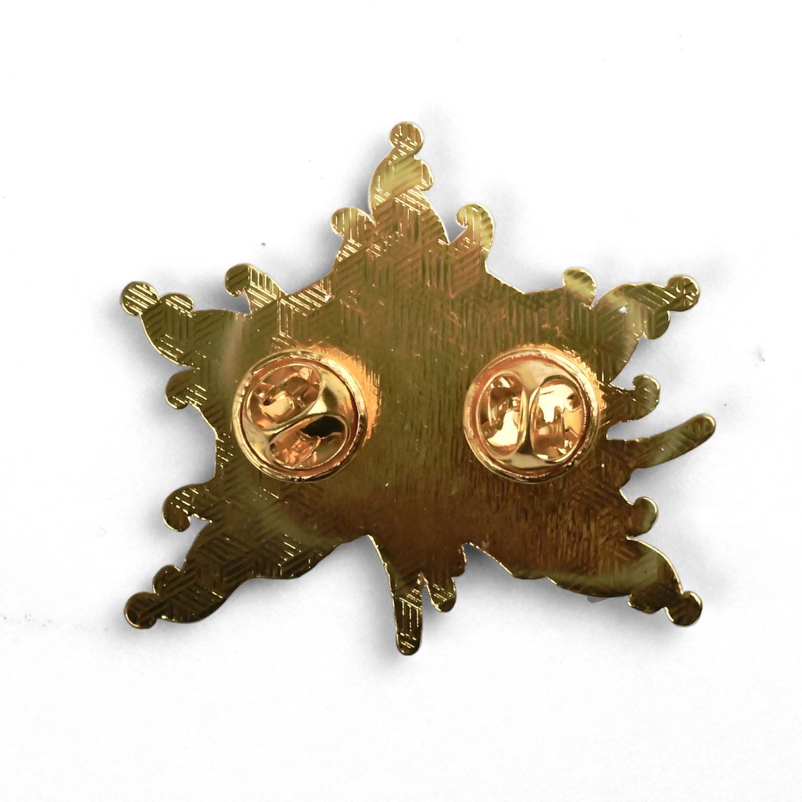 Odznaka ma 10 cm i została wykonana z wysokiej jakości metalu, co zapewnia jej trwałość i efektowny wygląd. Dzięki podwójnemu zapięciu stabilnie trzyma się na pelerynach, plecakach czy w gablocie kolekcjonerskiej. Na awersie znajduje się oko otoczone stylizowanymi płomieniami w odcieniach pomarańczu i fioletu, emanujące mocą i tajemnicą. Srebrne detale podkreślają kunszt wykonania, a rewers z błyszczącym złotym wykończeniem i subtelnym wzorem dodaje odznace elegancji.