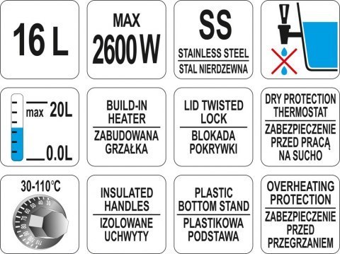 Zabezpieczenia przeciw przegrzaniu się oraz przed pracą na sucho znacznie wydłużają żywotność urządzenia