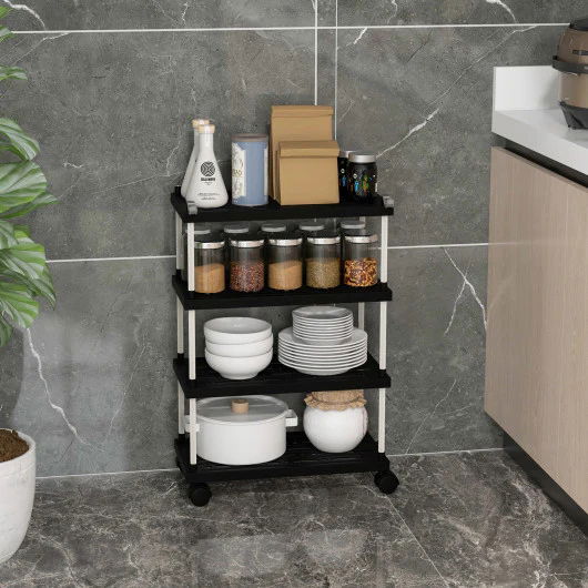 Wąski 4-poziomowy Wózek Kuchenny Organizer z Blokowanymi Kółkami Czarny