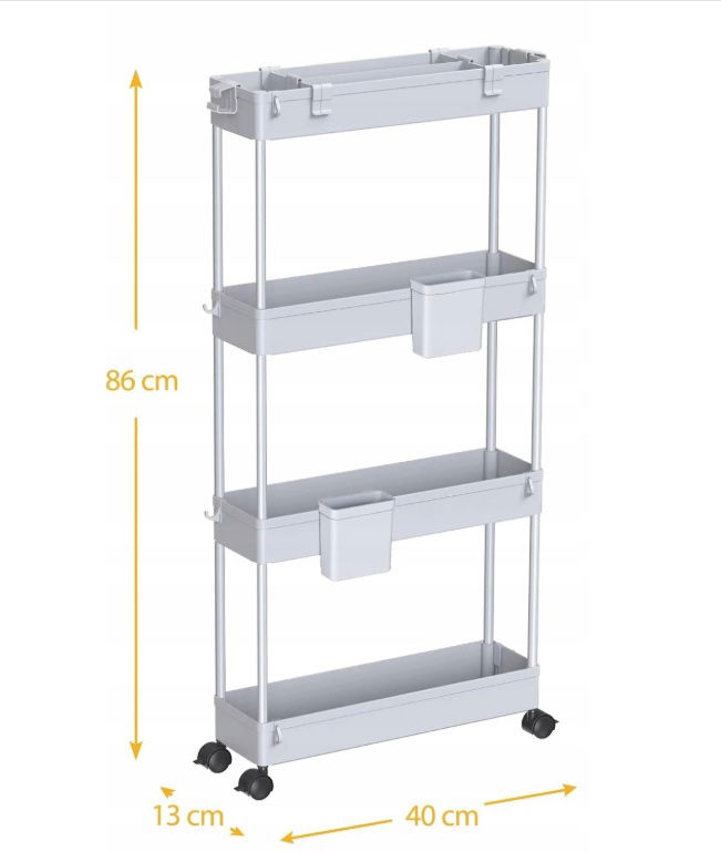 Wąski regał łazienkowy, półka do kuchni, łazienki na kółkach 4 poziomy