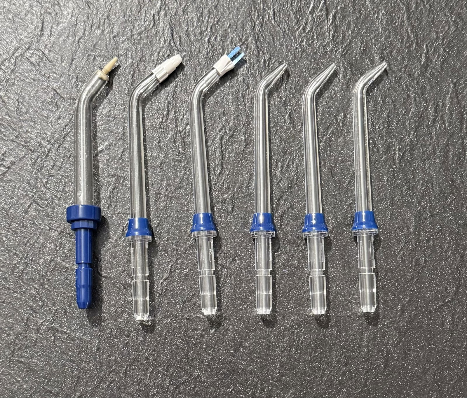 6 unikalnych końcówek, w tym końcówki specjalne przeznaczone do aparatów ortodontycznych, implantów i innych uzupełnień protetycznych tj. (korony,mosty).