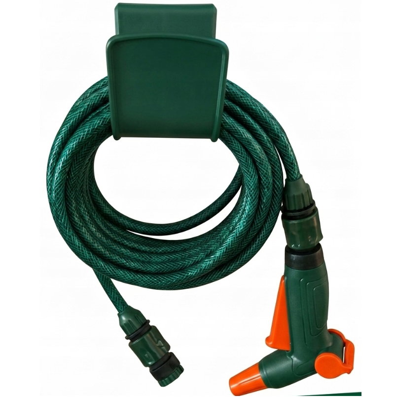 Wąż ogrodowy z przyłączem 3/4 redukcją 1/2 pistoletem i hakiem do montażu