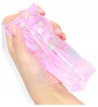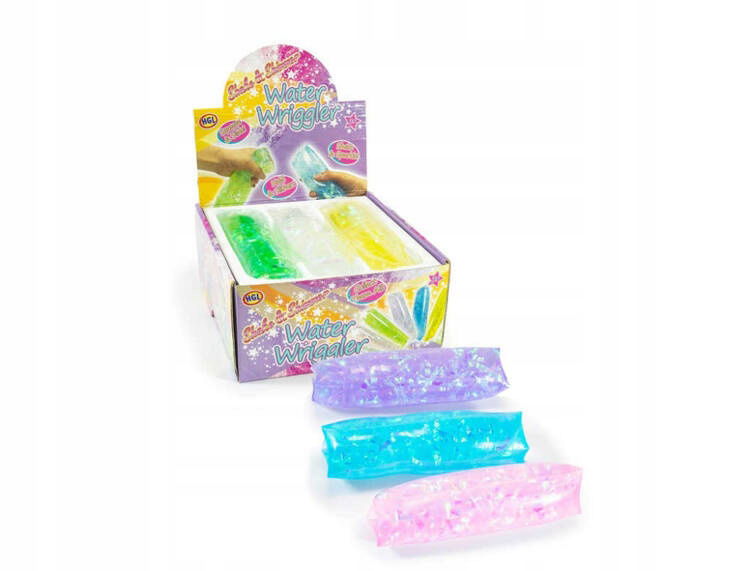 Gumowy wąż, wypełniony płynem z brokatowymi gwiazdkami, którego bardzo trudno utrzymać w dłoni.