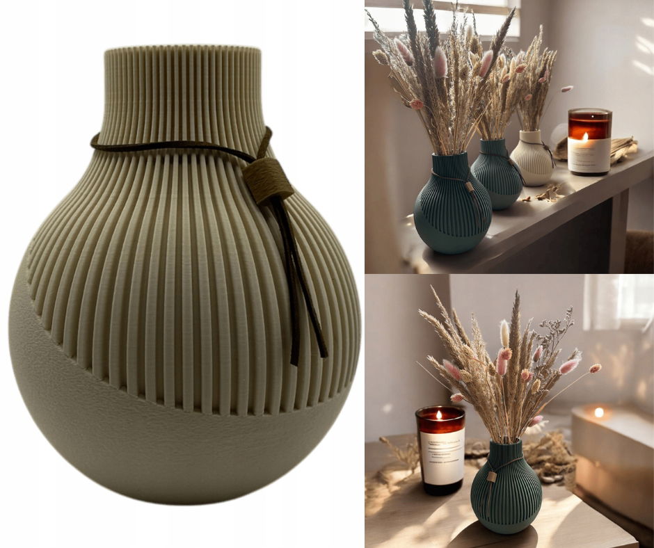 Unikalność produktu: Ze względu na technologię druku 3D, każdy wazon jest unikalny i może nieznacznie różnić się od siebie w odcieniu oraz drobnych detalach wykończenia. To właśnie te subtelne różnice dodają mu indywidualnego charakteru i sprawiają, że staje się on wyjątkową ozdobą Twojego domu.