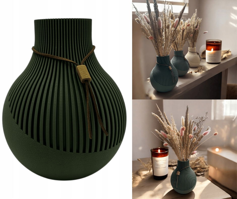 Unikalność produktu: Ze względu na technologię druku 3D, każdy wazon jest unikalny i może nieznacznie różnić się od siebie w odcieniu oraz drobnych detalach wykończenia. To właśnie te subtelne różnice dodają mu indywidualnego charakteru i sprawiają, że staje się on wyjątkową ozdobą Twojego domu.