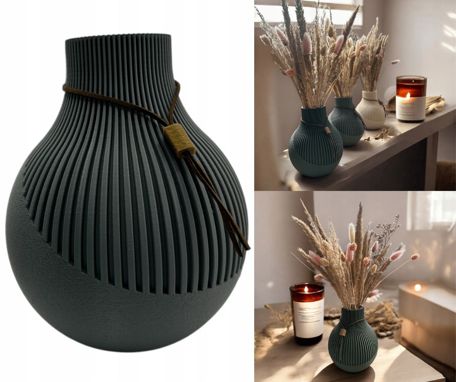 Unikalność produktu: Ze względu na technologię druku 3D, każdy wazon jest unikalny i może nieznacznie różnić się od siebie w odcieniu oraz drobnych detalach wykończenia. To właśnie te subtelne różnice dodają mu indywidualnego charakteru i sprawiają, że staje się on wyjątkową ozdobą Twojego domu.