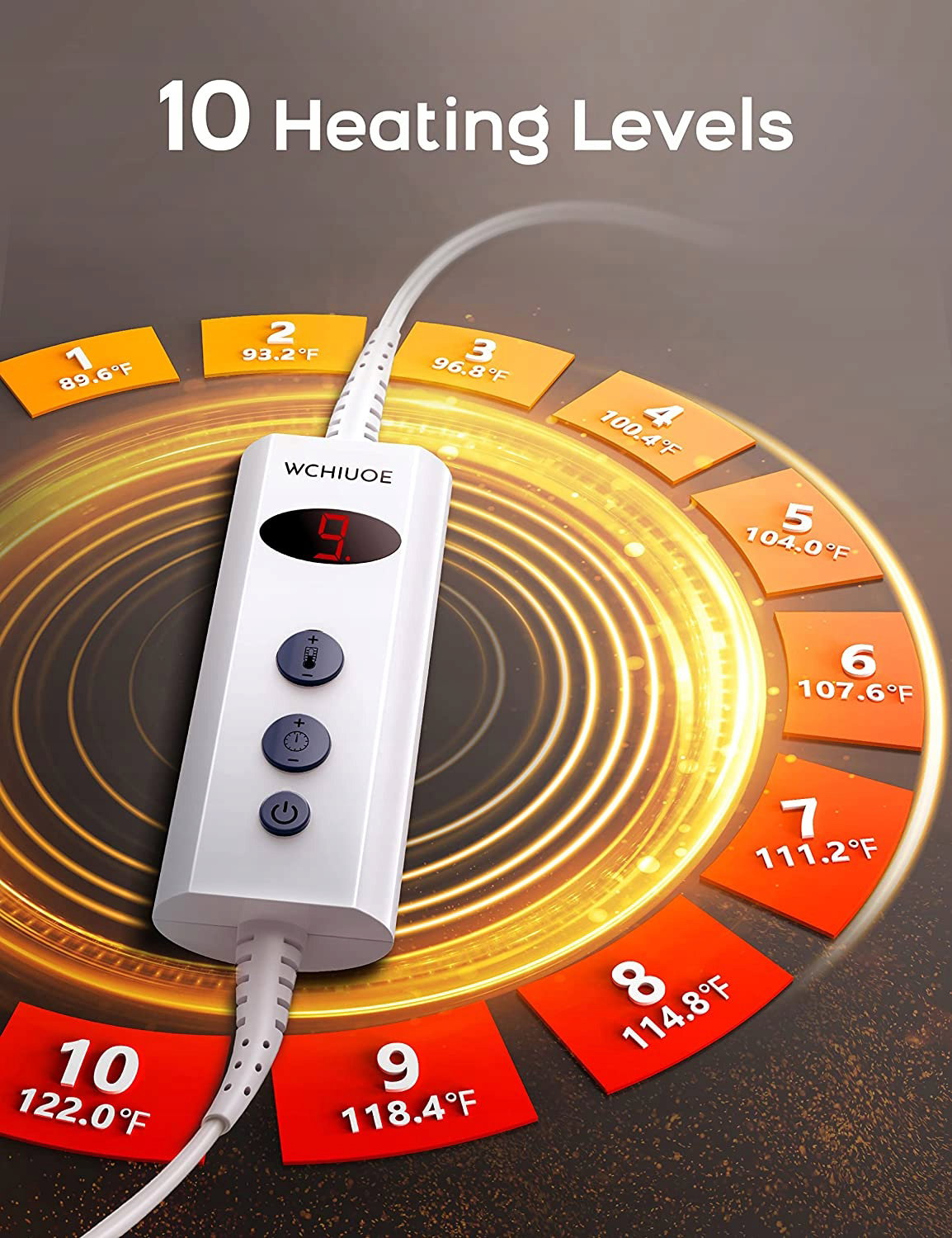Regulowana temperatura: Elektryczny podgrzewany koc szybko się nagrzewa i możesz dostosować żądany komfort za pomocą odłączanego / przewodowego kontrolera